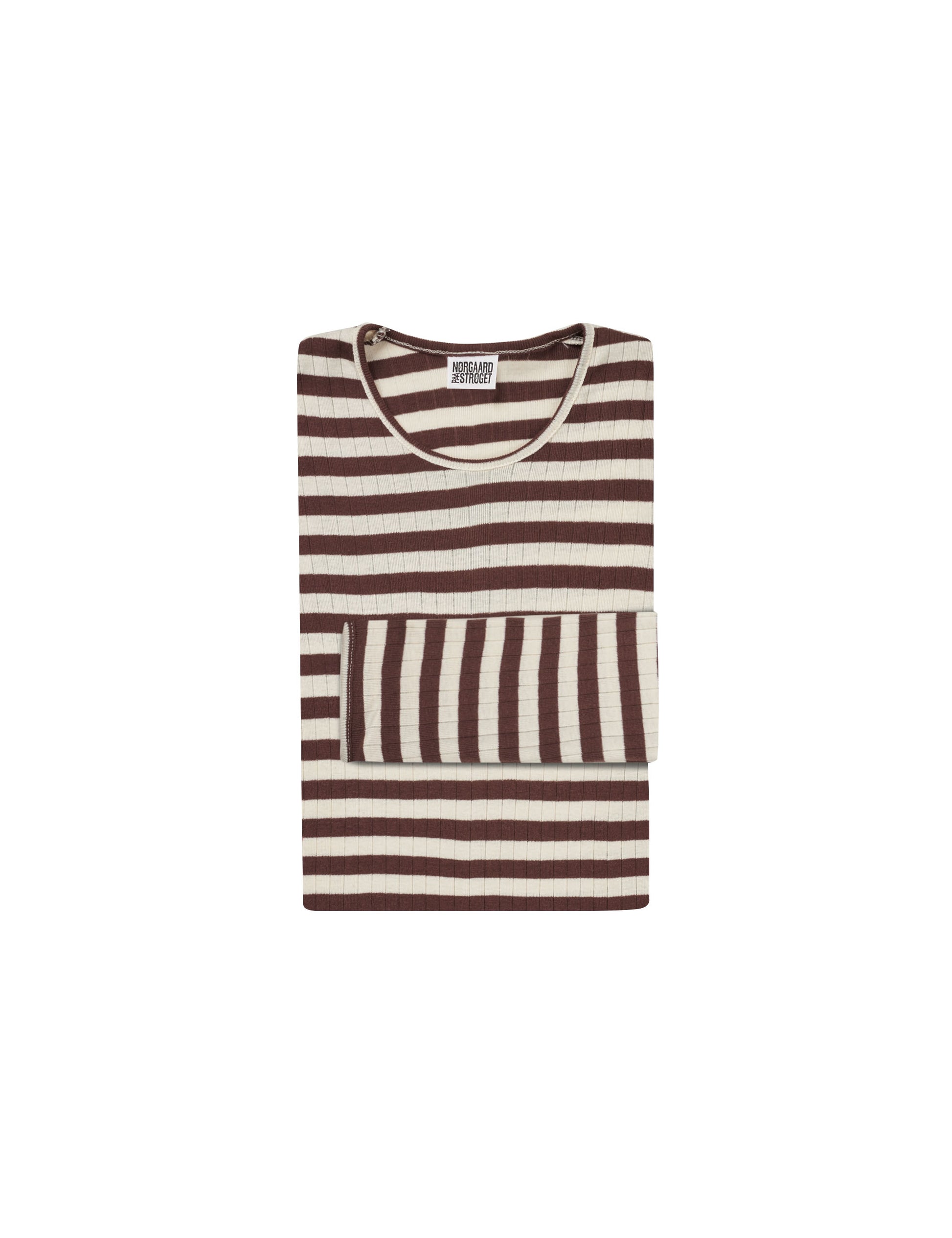 101 Kids Broadway ist das klassische #101-T-Shirt für Kinder. Diese Edition ist klein und ecrufarben. Das #101 T-Shirt von Nørgaard paa Strøget wurde 1967 von Jørgen Nørgaard entworfen. Das T-Shirt wird in Dänemark gestrickt, gefärbt und genäht und besteht aus 100 % Baumwolle. Das #101 T-Shirt für Kinder ist im Gegensatz zum T-Shirt für Frauen in verschiedenen Größen erhältlich. Das langärmelige T-Shirt wird in drei verschiedenen Streifentypen und in allen Farben des Regenbogens hergestellt.