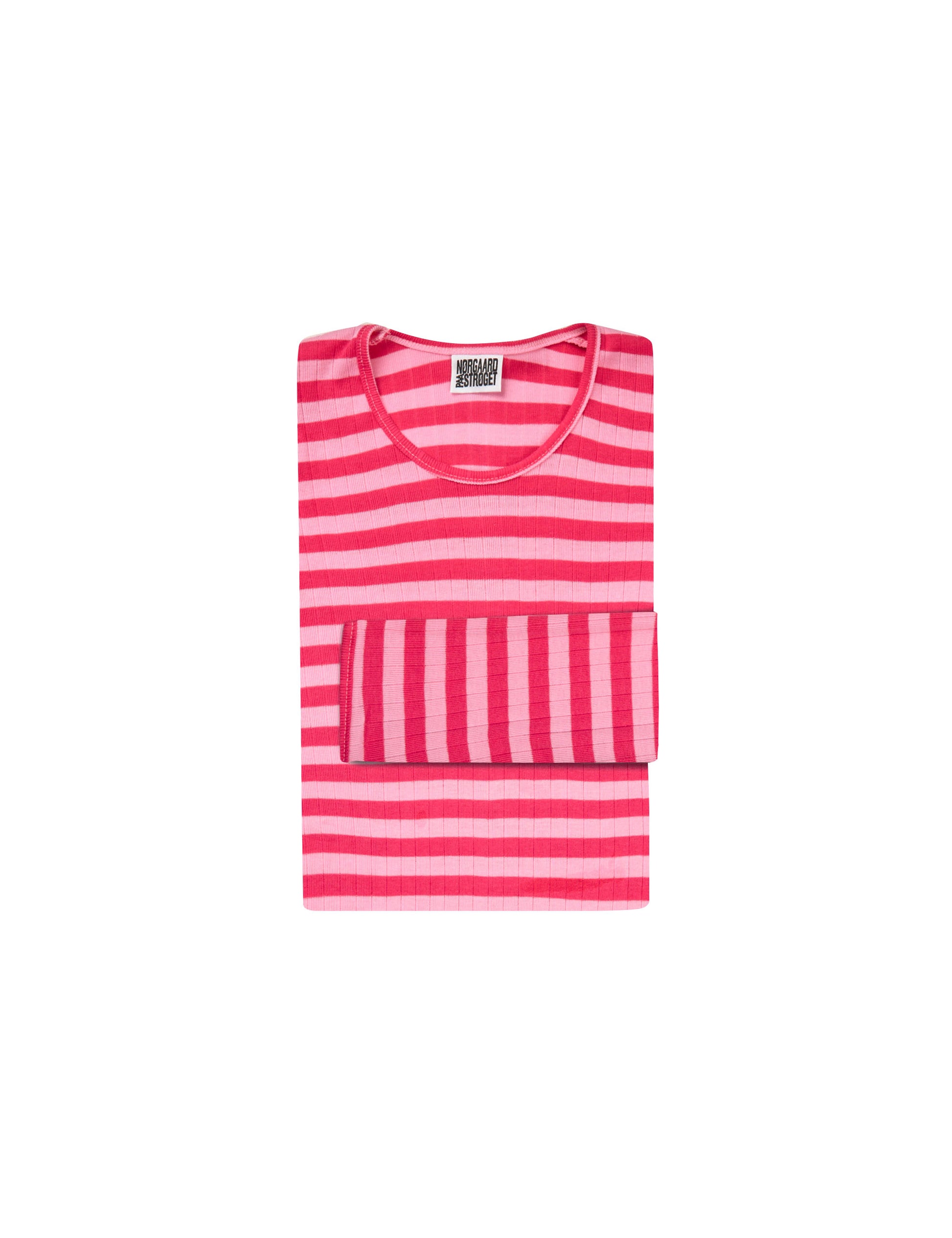 101 Kids Broadway ist das klassische #101-T-Shirt für Kinder. Diese Edition ist klein und ecrufarben. Das #101 T-Shirt von Nørgaard paa Strøget wurde 1967 von Jørgen Nørgaard entworfen. Das T-Shirt wird in Dänemark gestrickt, gefärbt und genäht und besteht aus 100 % Baumwolle. Das #101 T-Shirt für Kinder ist im Gegensatz zum T-Shirt für Frauen in verschiedenen Größen erhältlich. Das langärmelige T-Shirt wird in drei verschiedenen Streifentypen und in allen Farben des Regenbogens hergestellt.