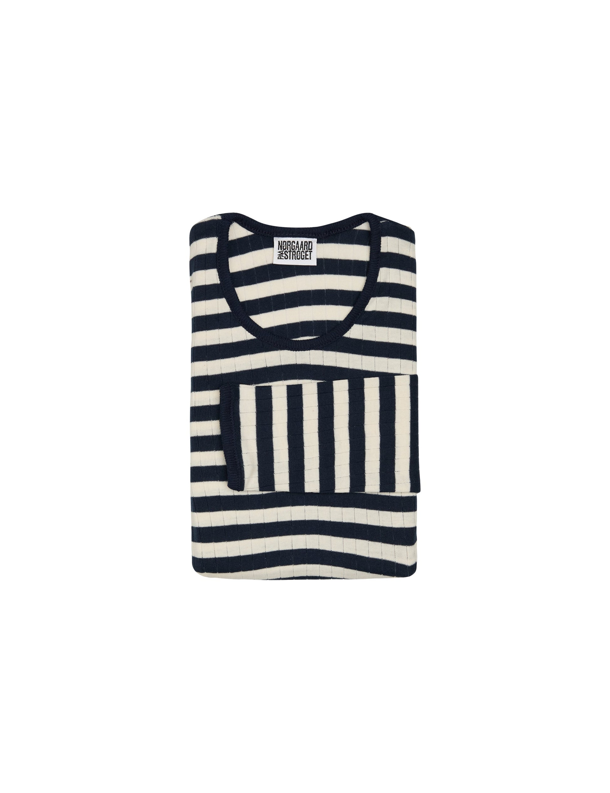 101 Kids Broadway ist das klassische #101-T-Shirt für Kinder. Diese Edition ist klein und ecrufarben. Das #101 T-Shirt von Nørgaard paa Strøget wurde 1967 von Jørgen Nørgaard entworfen. Das T-Shirt wird in Dänemark gestrickt, gefärbt und genäht und besteht aus 100 % Baumwolle. Das #101 T-Shirt für Kinder ist im Gegensatz zum T-Shirt für Frauen in verschiedenen Größen erhältlich. Das langärmelige T-Shirt wird in drei verschiedenen Streifentypen und in allen Farben des Regenbogens hergestellt.