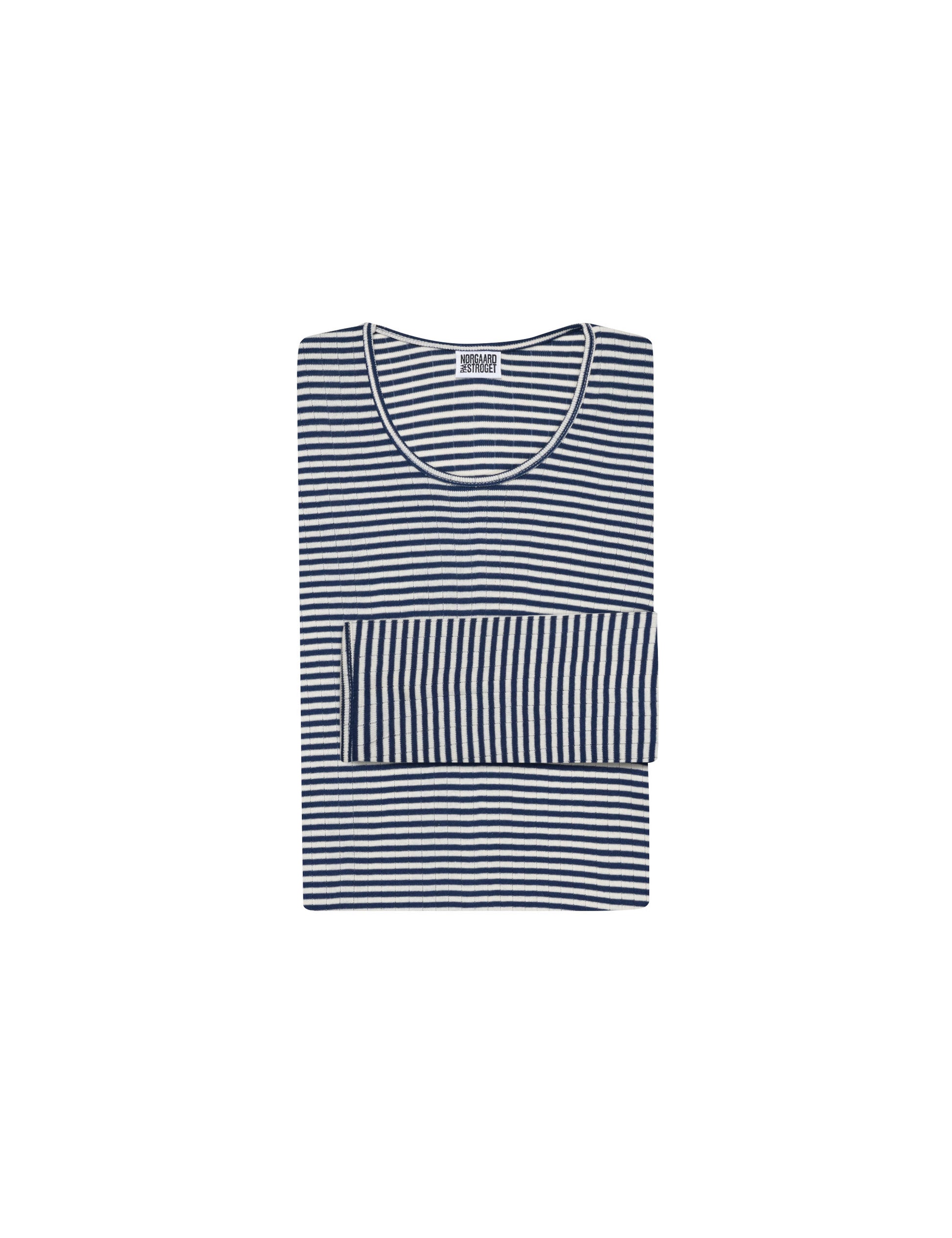 101 Kids Fine Stripe ist das klassische #101-T-Shirt für Kinder. Das #101 T-Shirt von Nørgaard paa Strøget wurde 1967 von Jørgen Nørgaard entworfen. Das T-Shirt wird in Dänemark gestrickt, gefärbt und genäht und besteht aus 100 % Baumwolle. Das #101 T-Shirt für Kinder ist im Gegensatz zum T-Shirt für Frauen in verschiedenen Größen erhältlich. Das langärmelige T-Shirt wird in verschiedenen Streifentypen und in allen Farben des Regenbogens hergestellt. Das #101 T-Shirt für Kinder wurde anlässlich der Eröffnung von Englebørn im Jahr 1973 hergestellt.