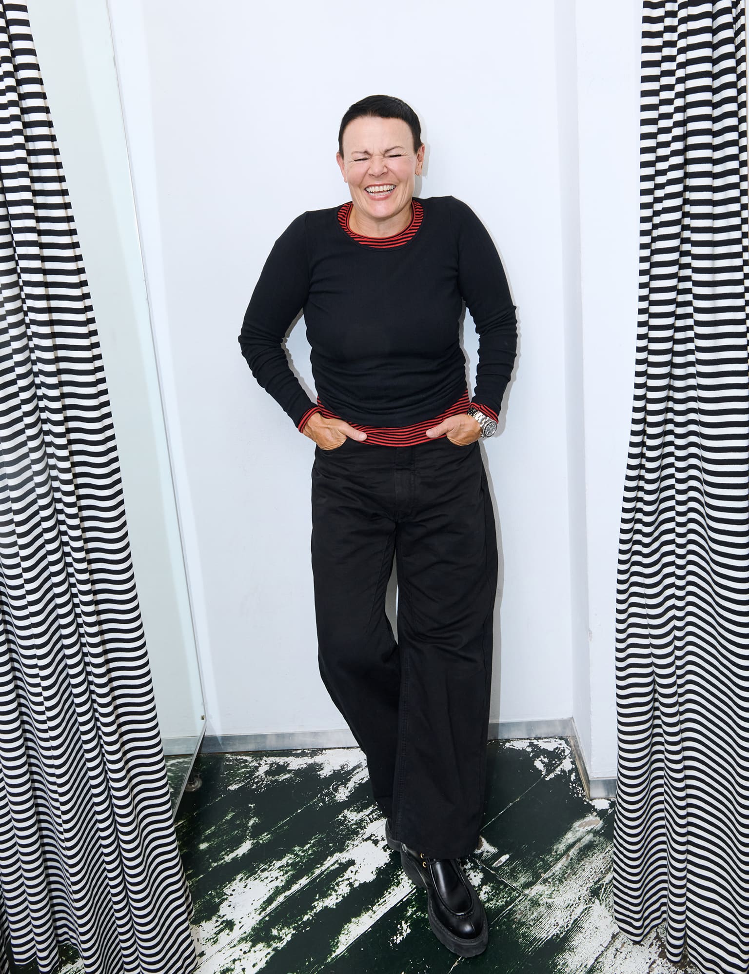 101 Solid Colour ist das klassische #101-T-Shirt in einer einzigen Uni-Farbe. Das #101 T-Shirt von Nørgaard paa Strøget wurde 1967 von Jørgen Nørgaard entworfen. Das T-Shirt wird in Dänemark gestrickt, gefärbt und genäht und besteht aus 100% Baumwolle. Es hat eine Einheitsgröße, ist aber in zwei verschiedenen Längen erhältlich. Das langärmelige T-Shirt wird in drei verschiedenen Streifentypen und in allen Farben des Regenbogens hergestellt.
