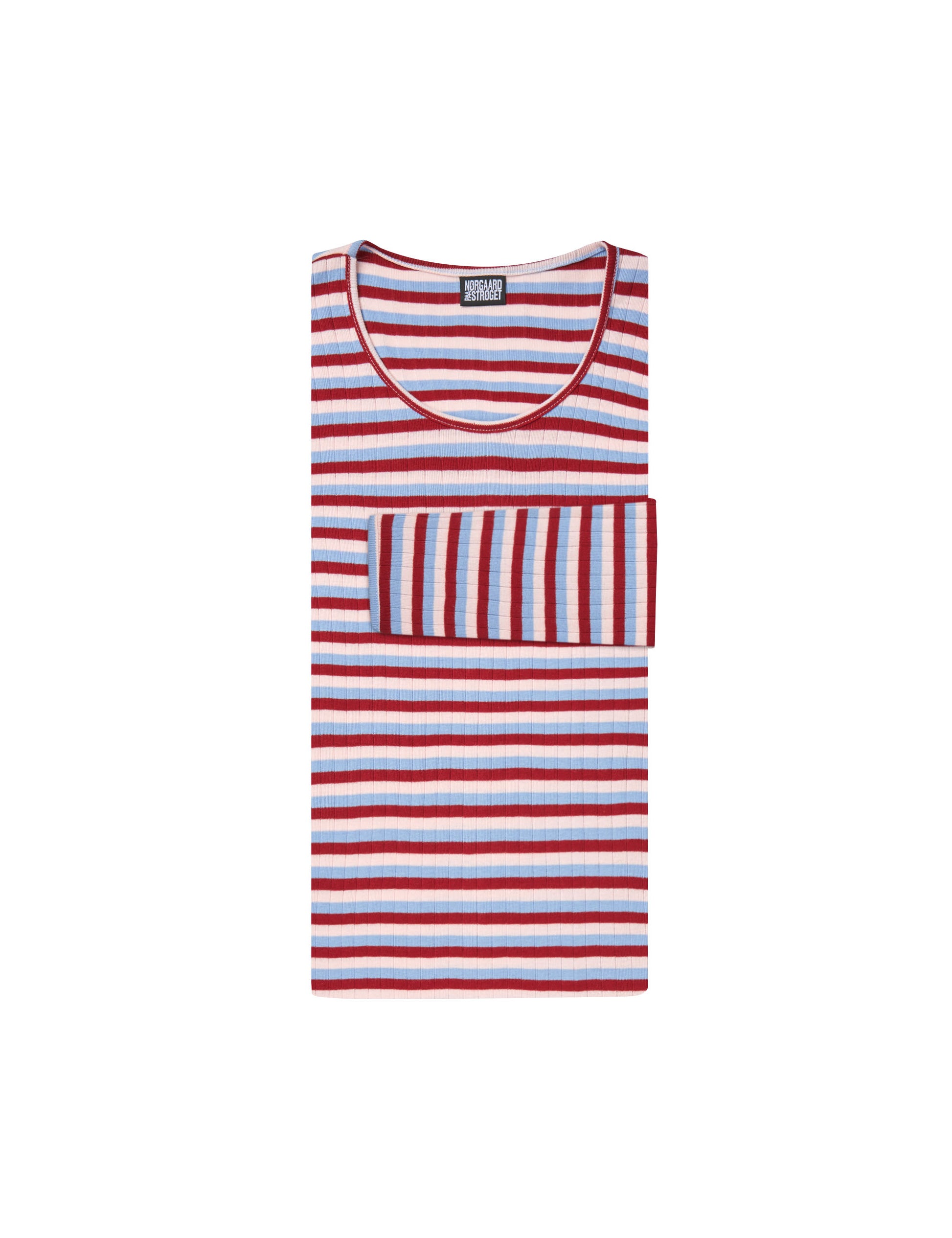 101 Tricolore ist das klassische gestreifte #101 T-Shirt mit drei Streifen. Das #101 T-Shirt von Nørgaard paa Strøget wurde 1967 von Jørgen Nørgaard entworfen. Das T-Shirt wird in Dänemark gestrickt, gefärbt und genäht und besteht aus 100 % Baumwolle. Es hat eine Einheitsgröße, ist aber in zwei verschiedenen Längen erhältlich. Das langärmelige T-Shirt wird in drei verschiedenen Streifentypen und in allen Farben des Regenbogens hergestellt.