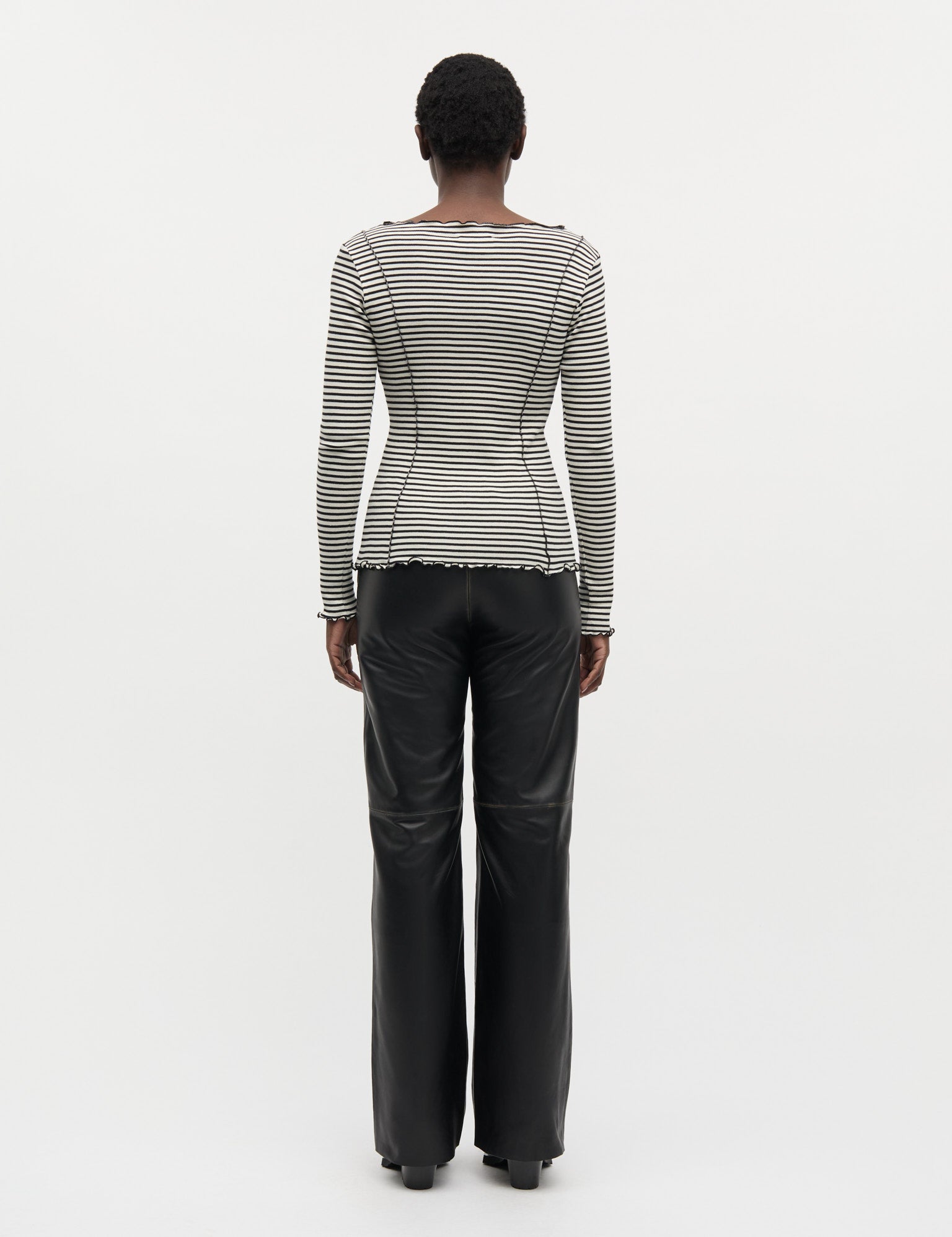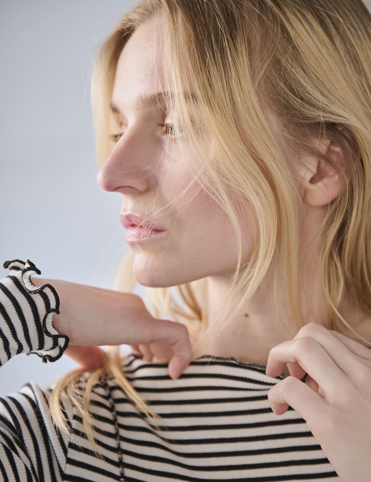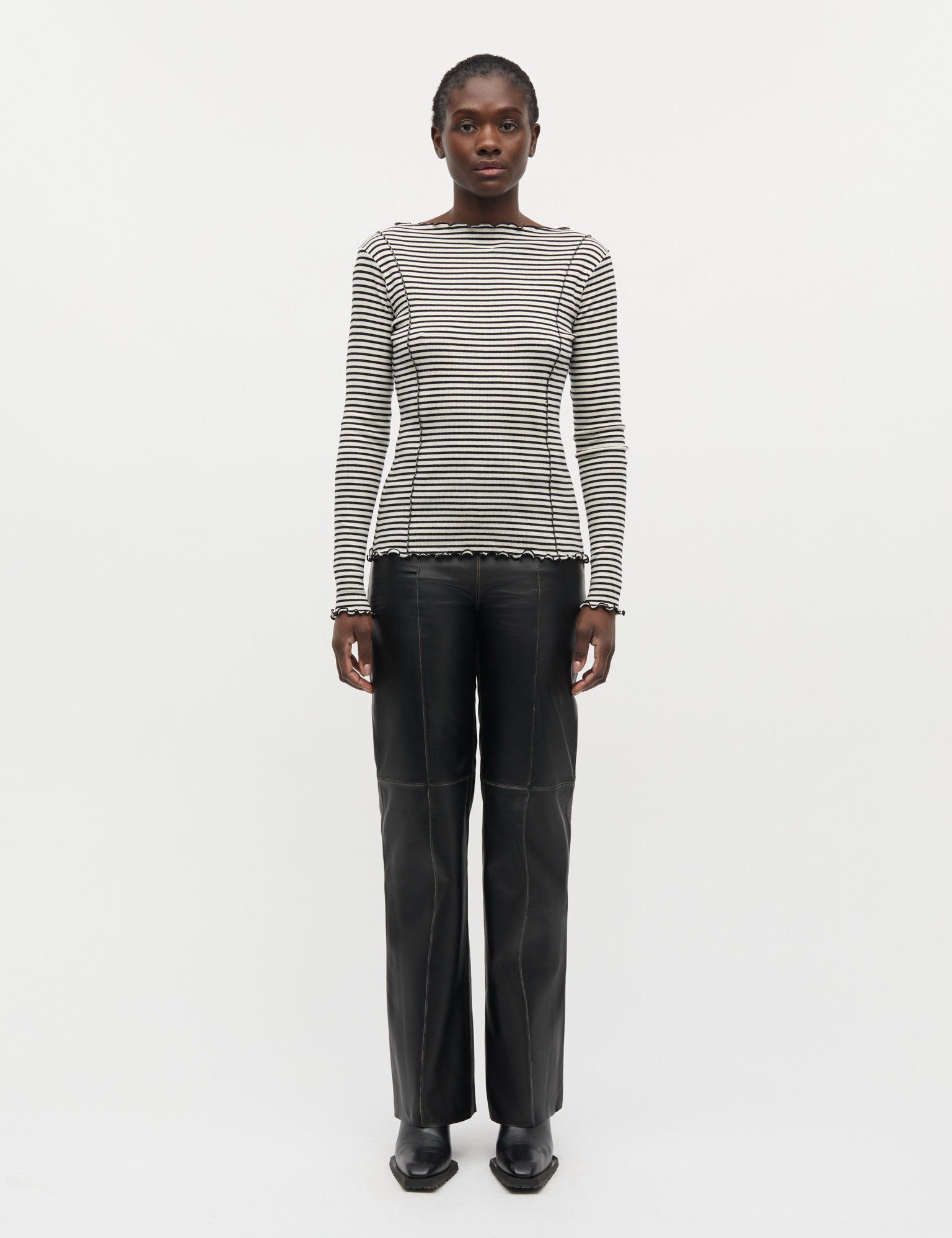 Eng anliegendes und dehnbares Langarmshirt mit U-Boot-Ausschnitt und Wellenkanten.