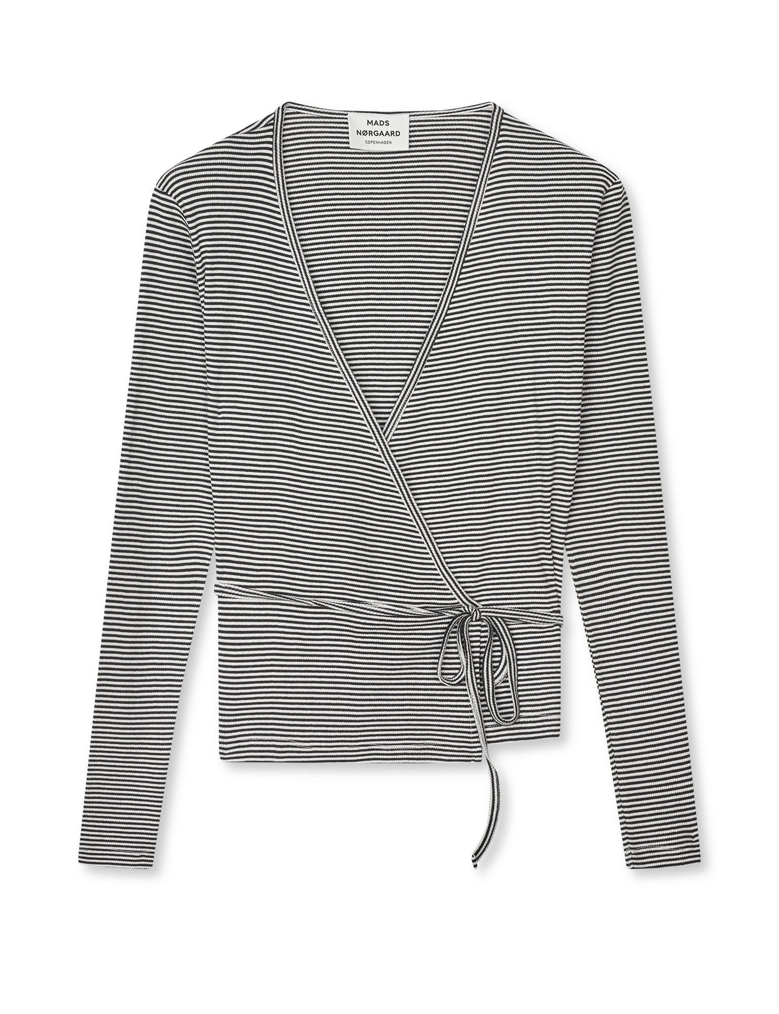 Cropped geschnittene, eng anliegende und dehnbare Wickel-Bluse mit langen Ärmeln.