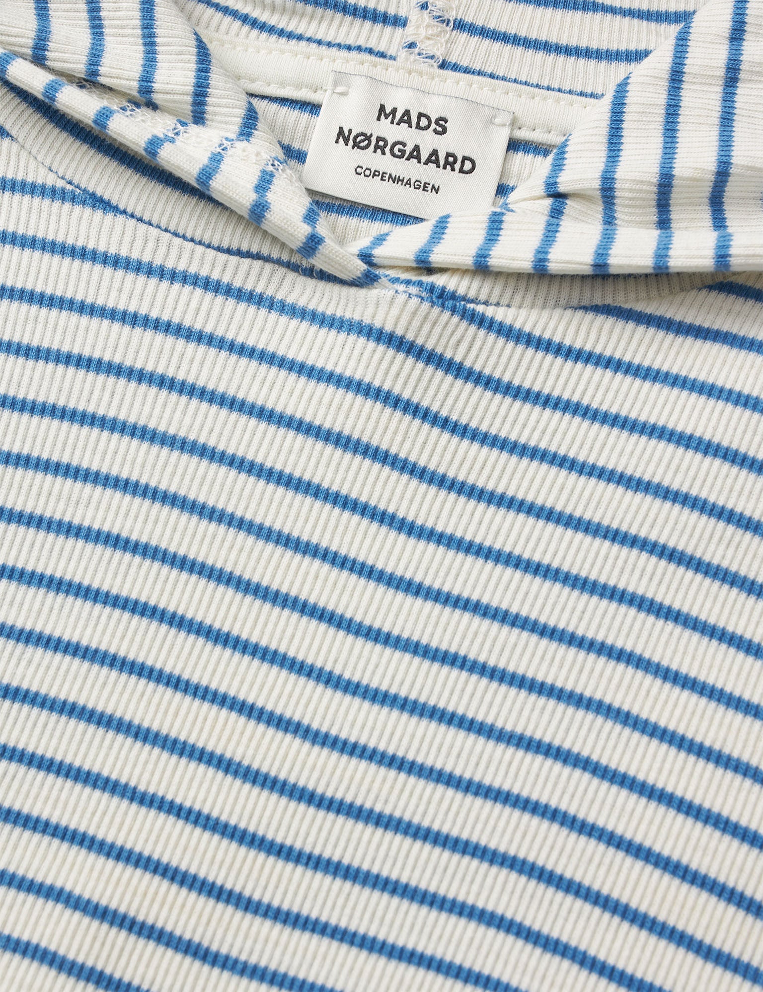 Langärmeliges, gestreiftes T-Shirt mit Kapuze aus dehnbarer und weicher Baumwolle.