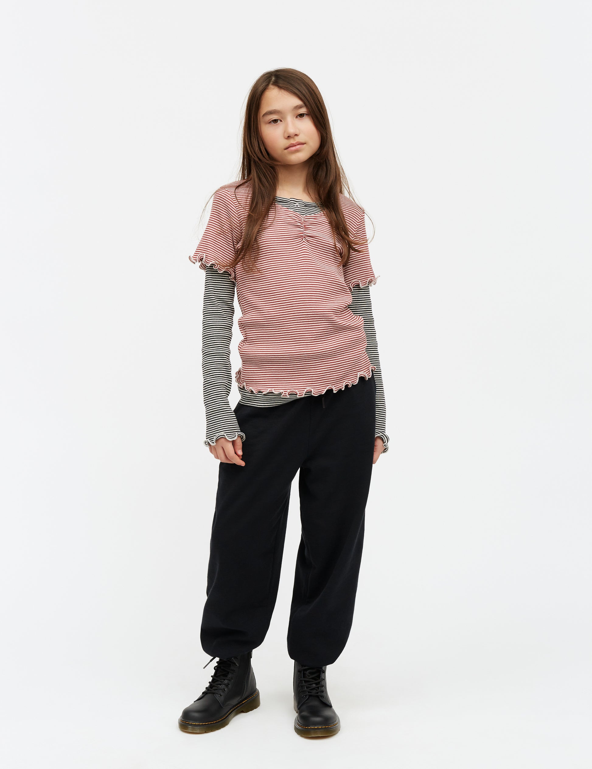 Das Model ist 138 cm groß und trägt Größe 10