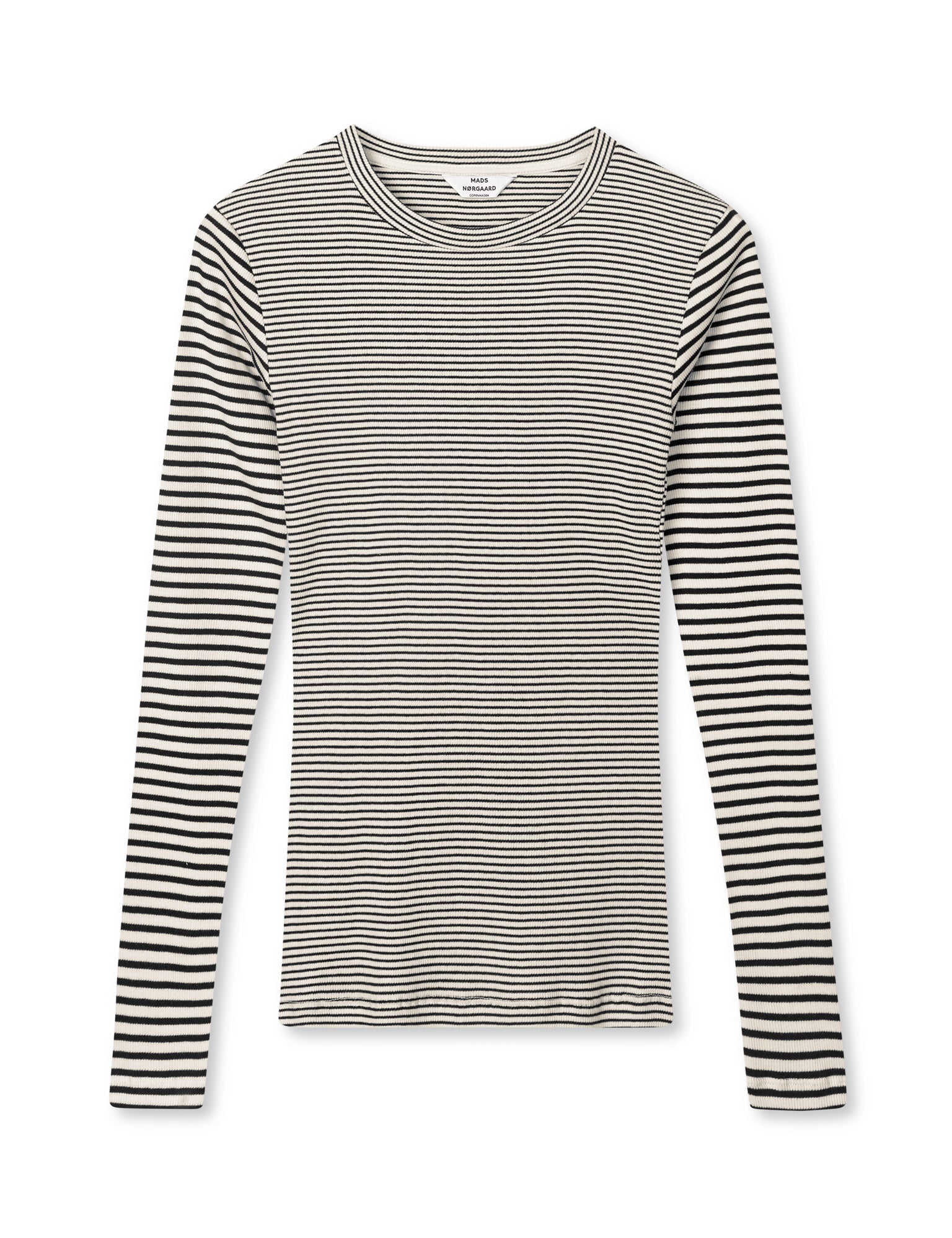 Eng anliegendes und dehnbares Langarmshirt mit einem Rundhalsausschnitt.