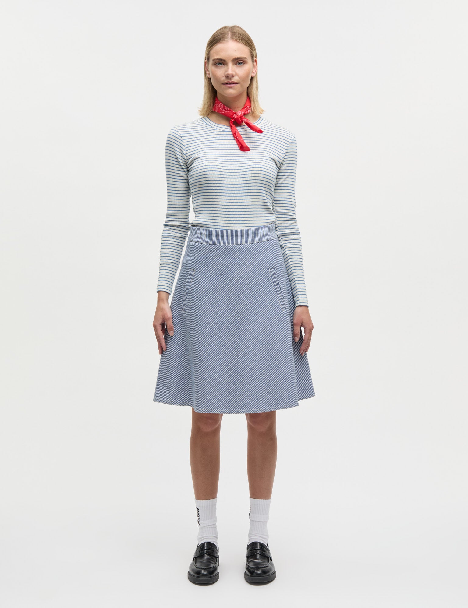 T-Shirt aus leichtem, gestreiftem Jersey. Mit normaler Passform und Rundhalsausschnitt.