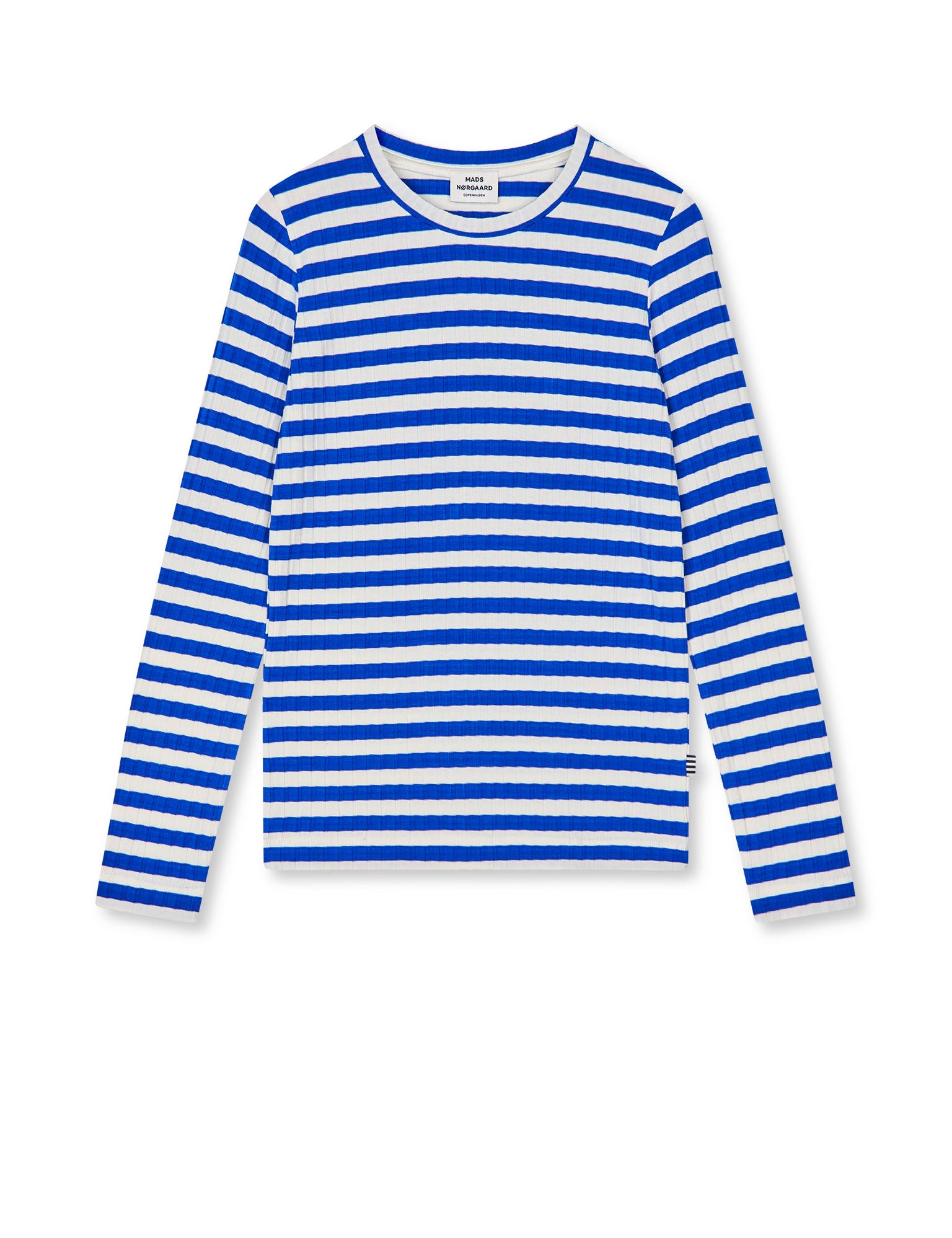 Bei unserem 5x5 Classic Stripe Talika Top handelt es sich um ein Langarmshirt aus sehr weichem und flexiblem Rippstrick-Jersey. Die Passform ist superdehnbar und eng anliegend, der Halsausschnitt ist rund und gerippt.