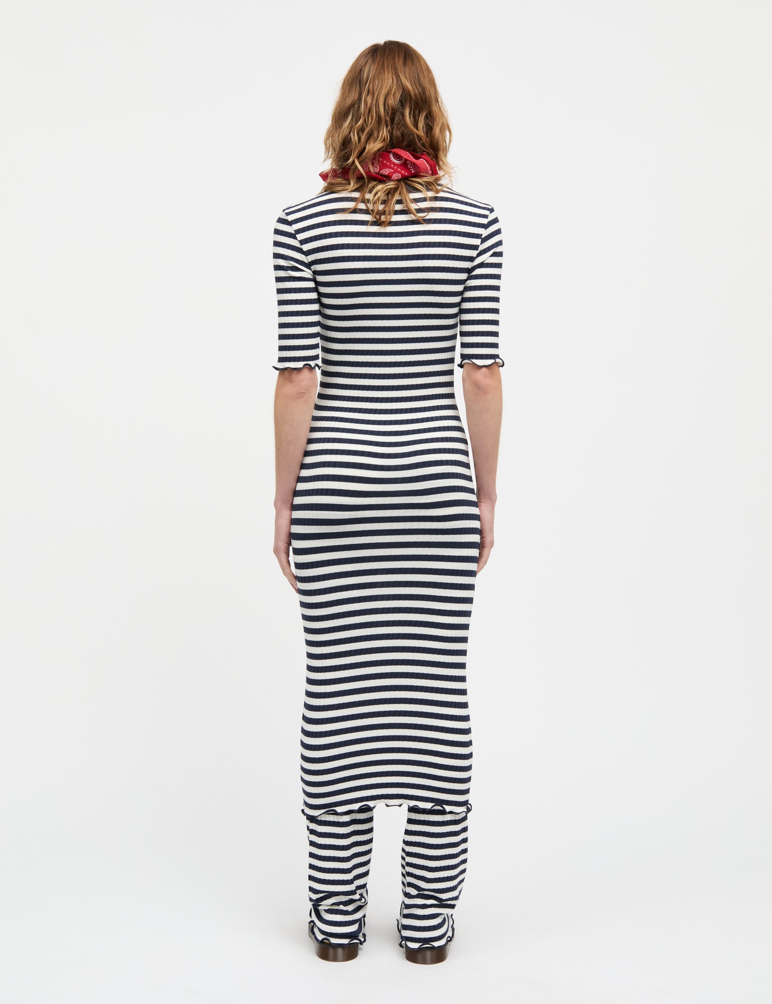 Eng anliegende und dehnbare Hose mit Elastikbund in der Taille und mit Bootcut-Beinen mit gekräuseltem Saum.