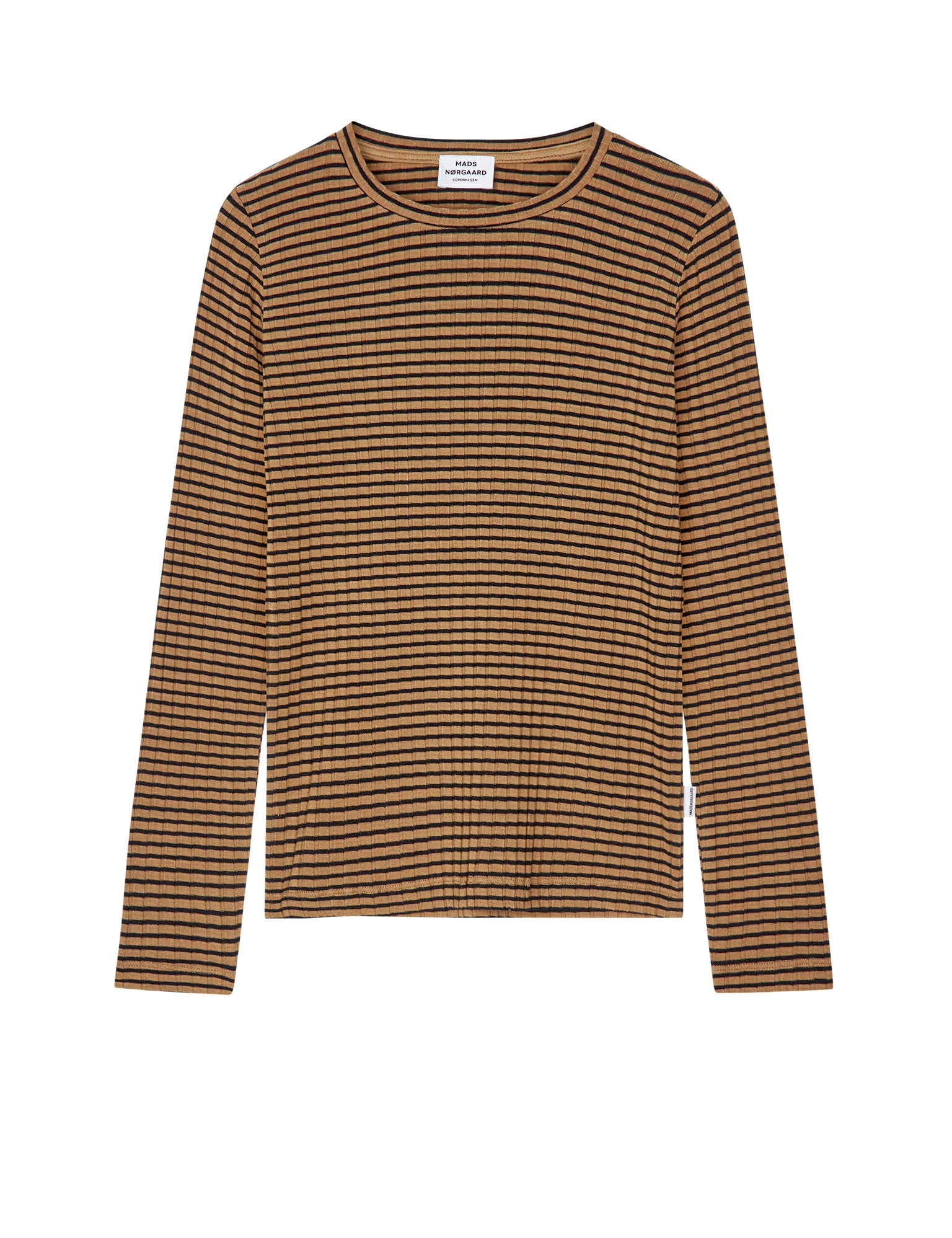 Weiches, eng anliegendes und dehnbares Langarmshirt mit einem Rundhalsausschnitt und eingerückten Schultern.