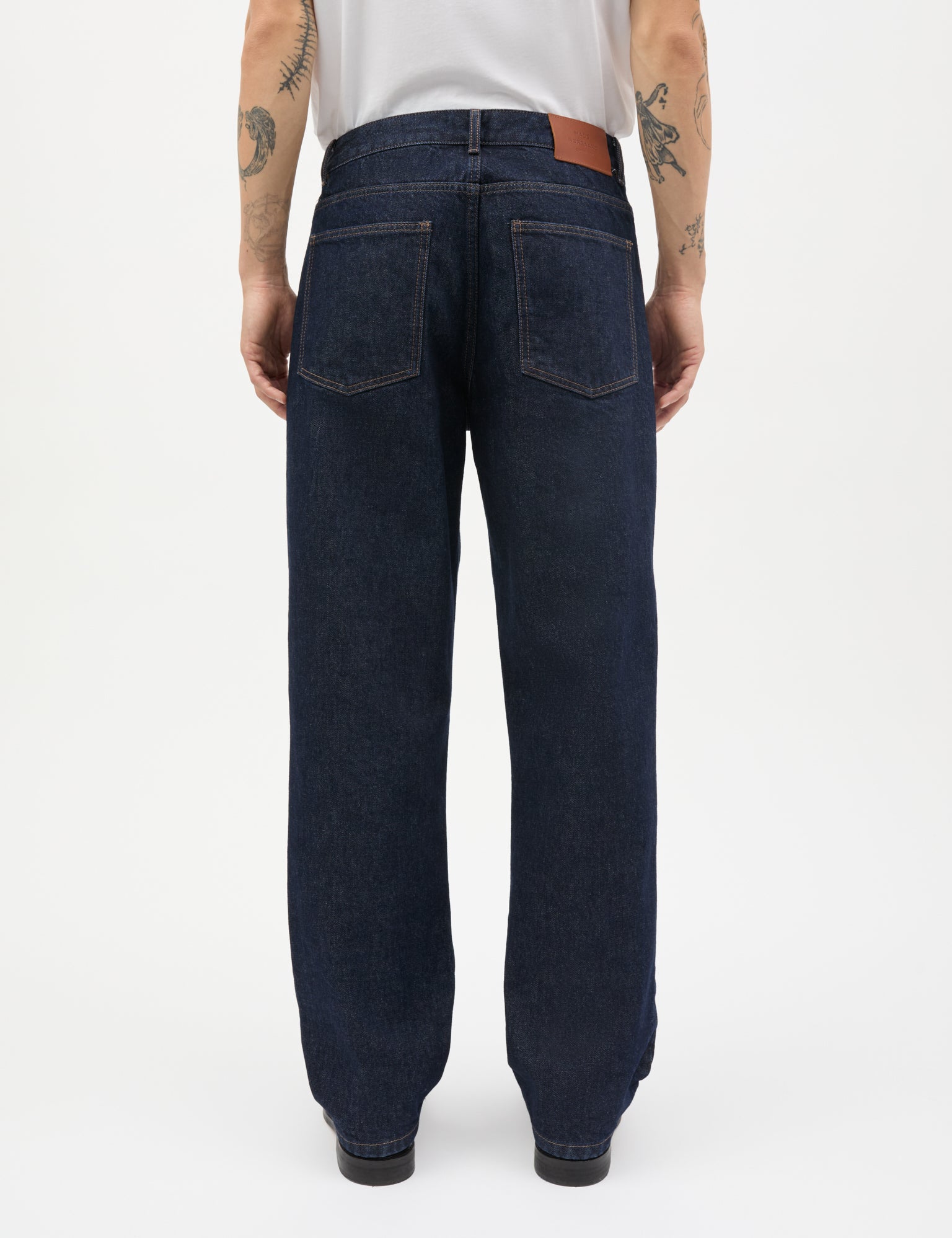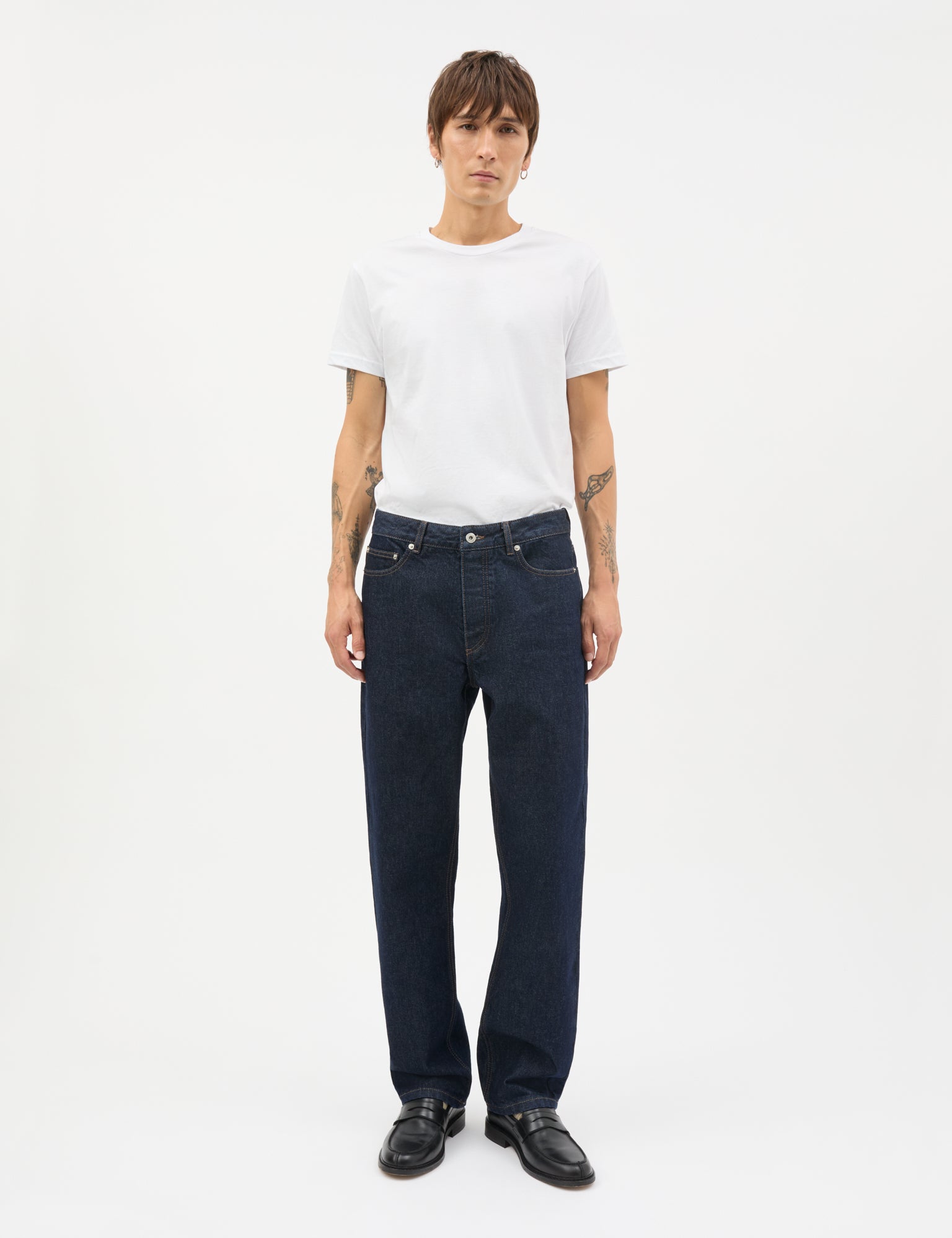 Locker sitzende 5-Pocket-Jeans mit geradem Bein, einem Lederlabel hinten und mit einem Reißverschluss und Knopf.