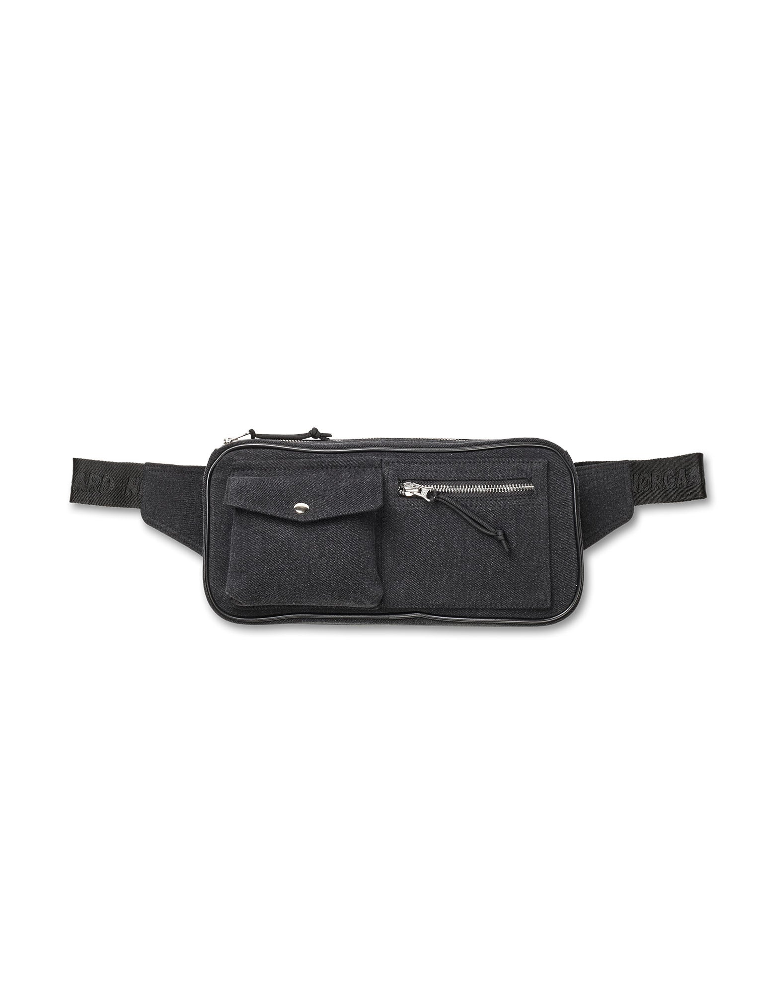Gürteltasche mit einem breiten, verstellbaren Riemen mit einer Klickschnalle, einem Reißverschluss sowie einer Innentasche und zwei Außentaschen.