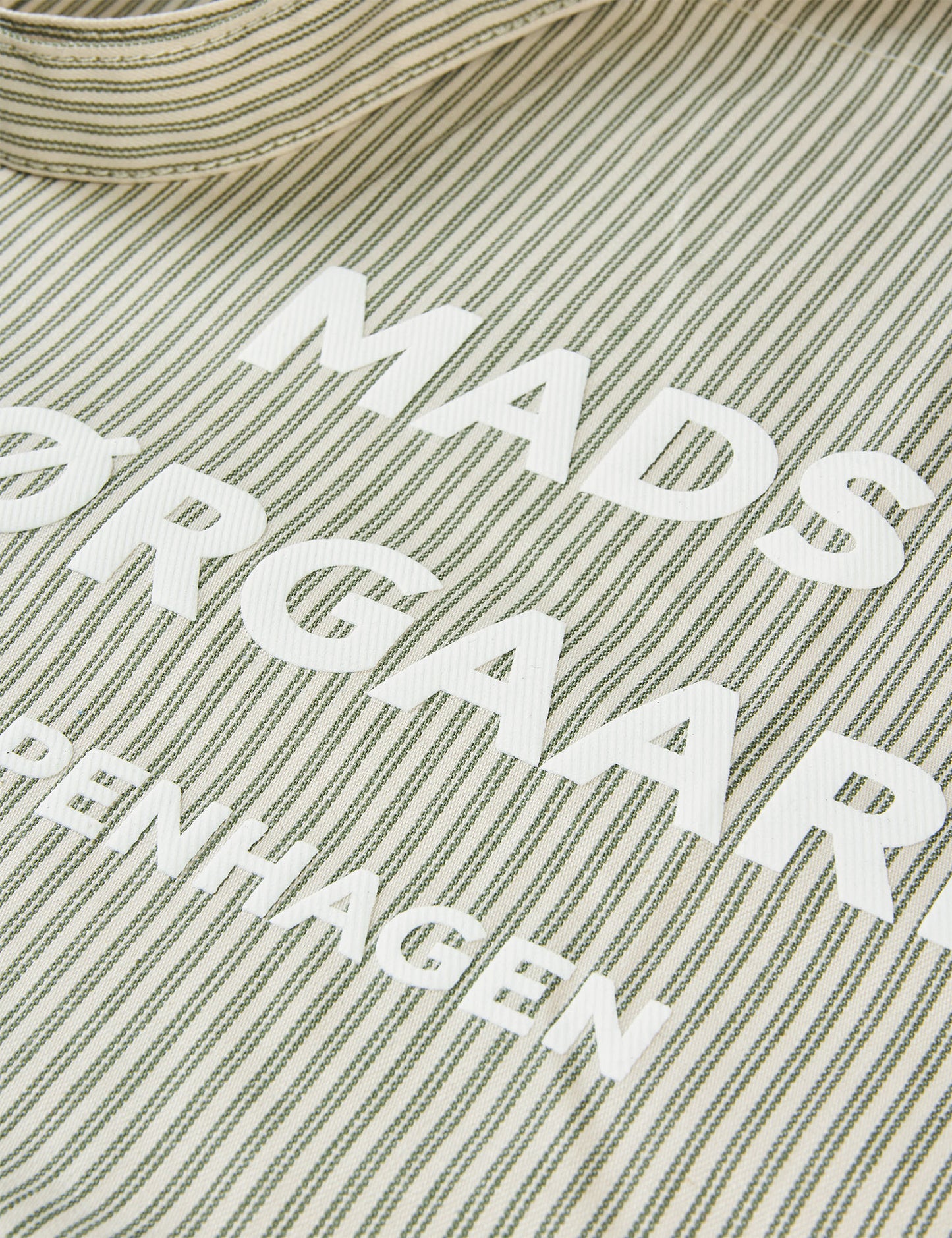 Strapazierfähiges Einkaufsnetz mit Streifen und großem Logo.