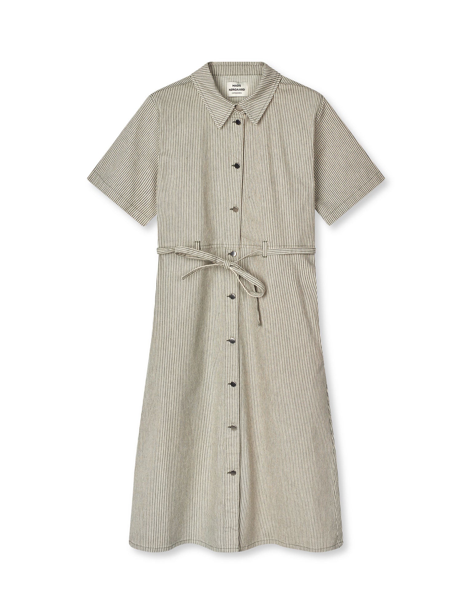 Hemdblusenkleid mit durchgehenden Knöpfen, Gürtelschlaufen, einem Bindegürtel und schmal umgekrempelten Ärmeln.