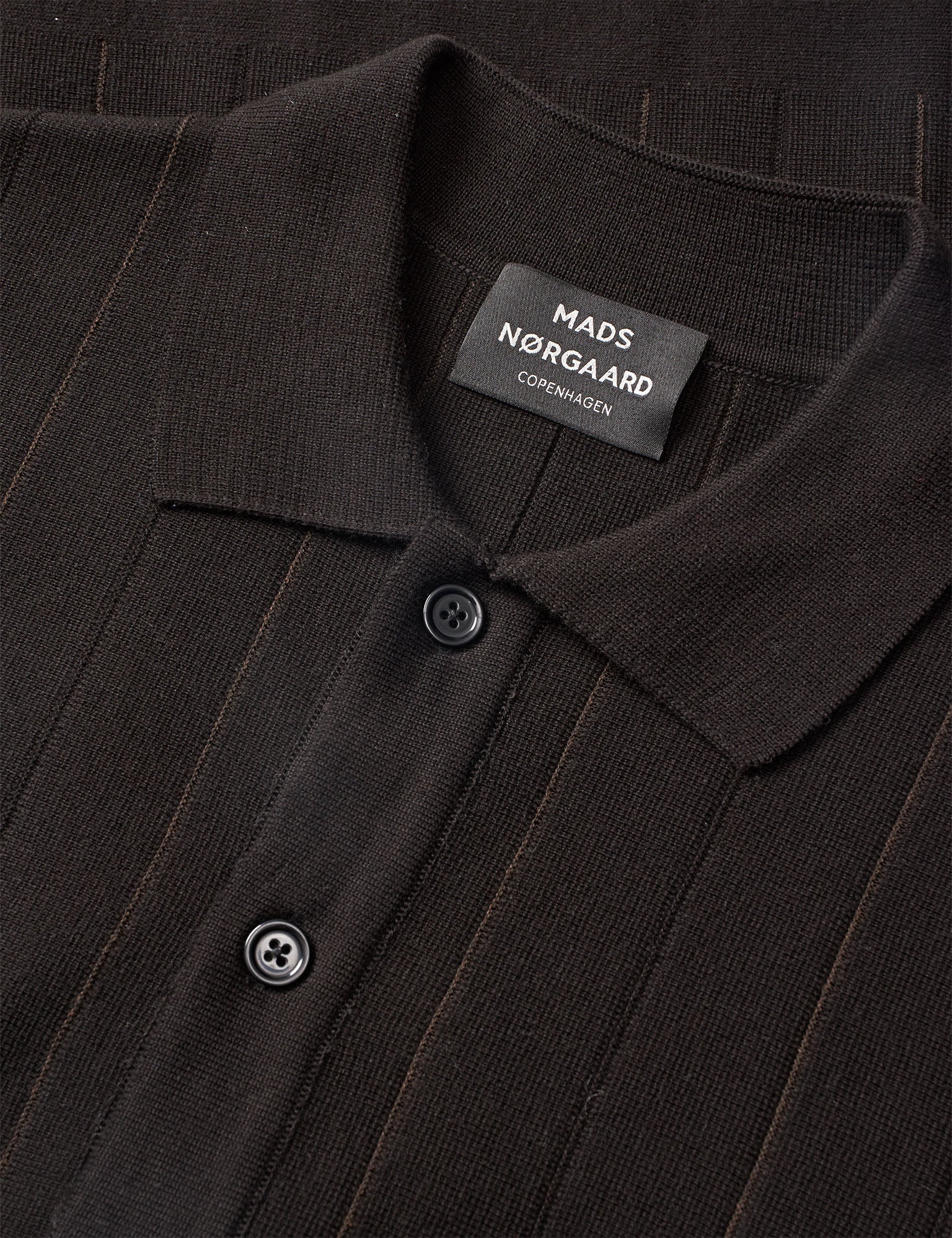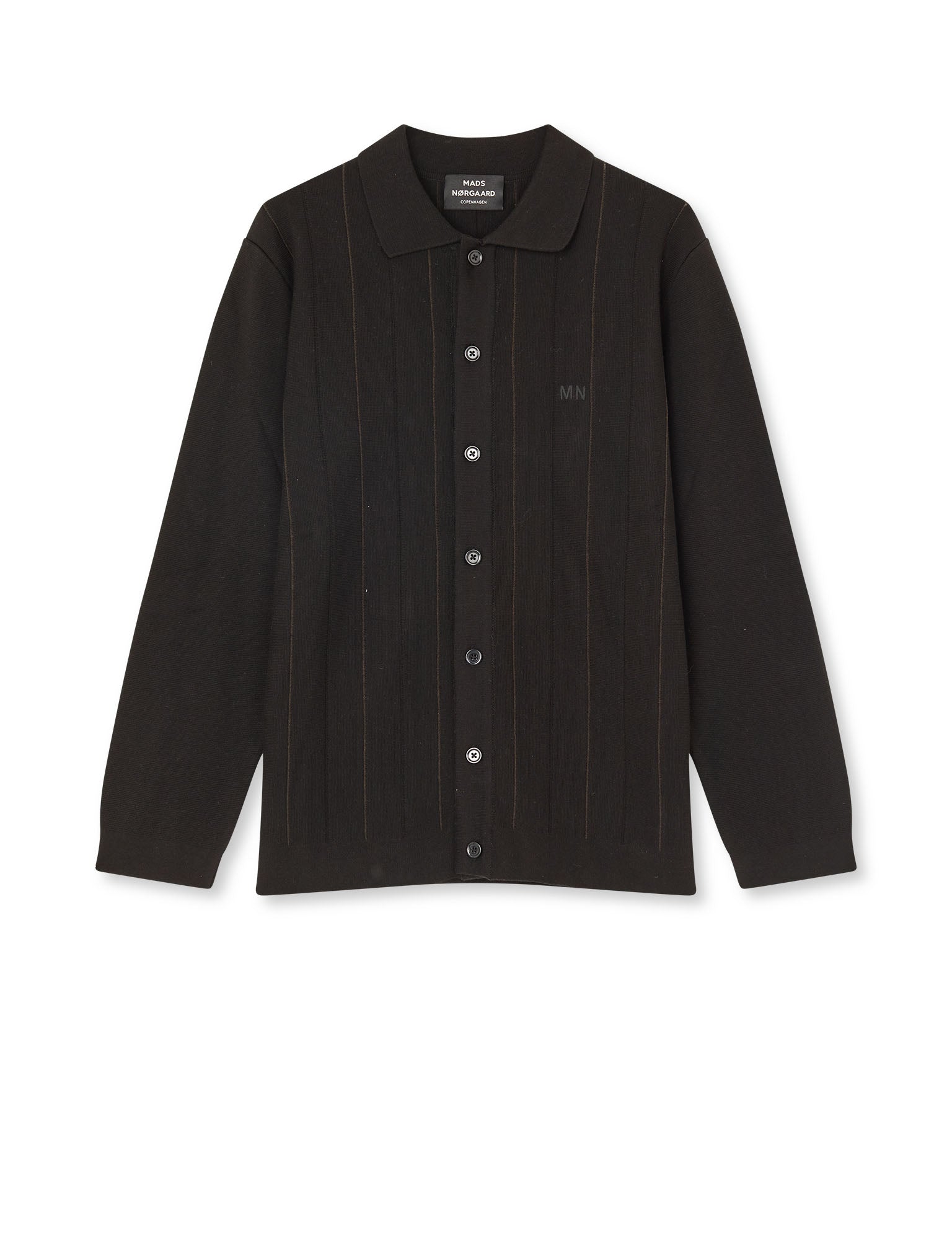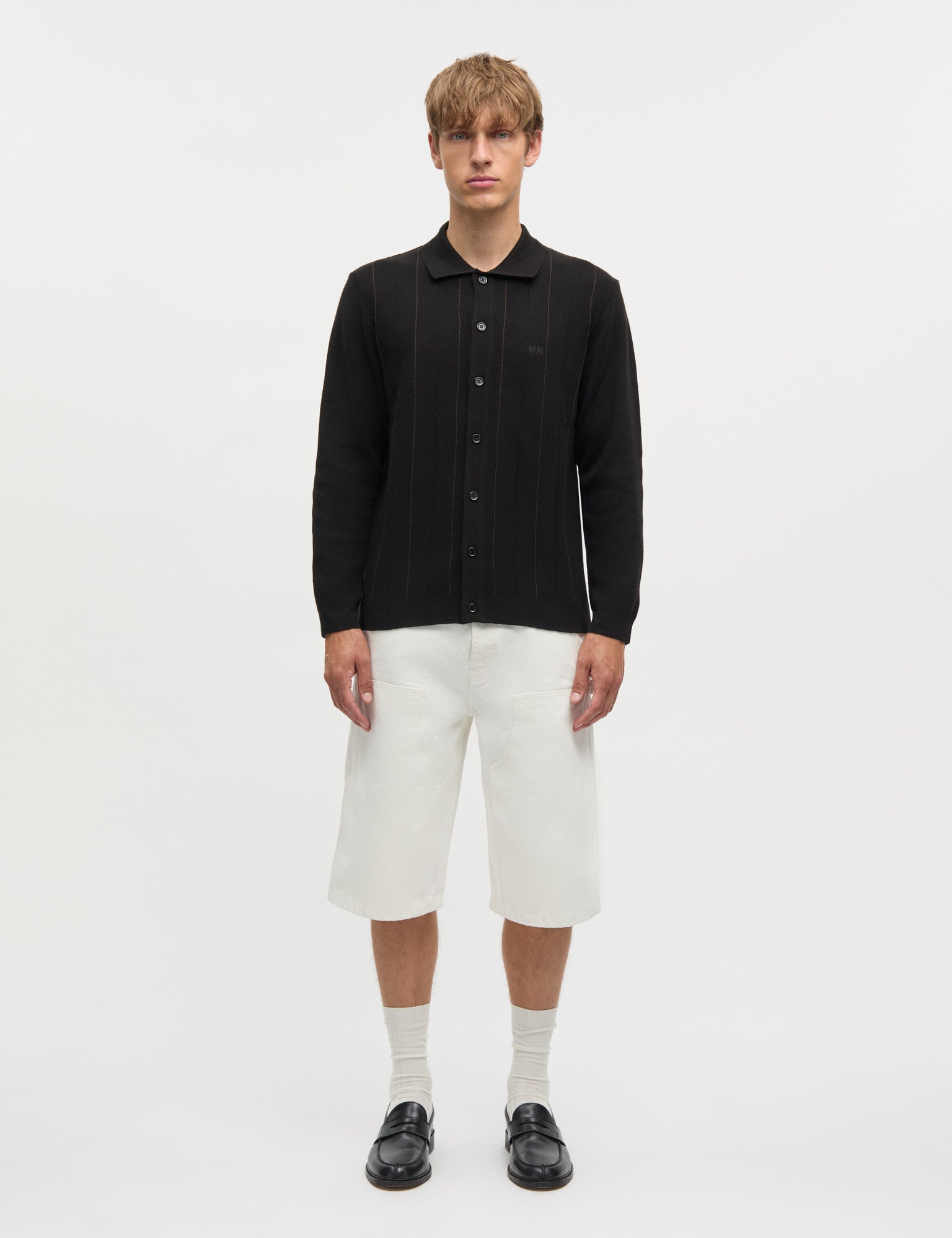 Langärmeliger Strickpullover mit Kragen und Knöpfen. Gerade Passform und vertikale Strukturstreifen.
