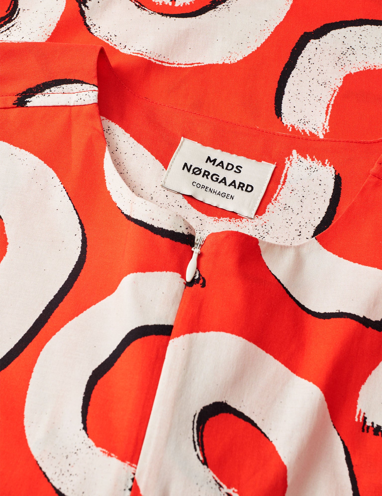 Bluse mit geradem Schnitt, rundem Ausschnitt, kleinem Reißverschluss vorne, langen Ärmeln und durchgehendem Grafikmuster.