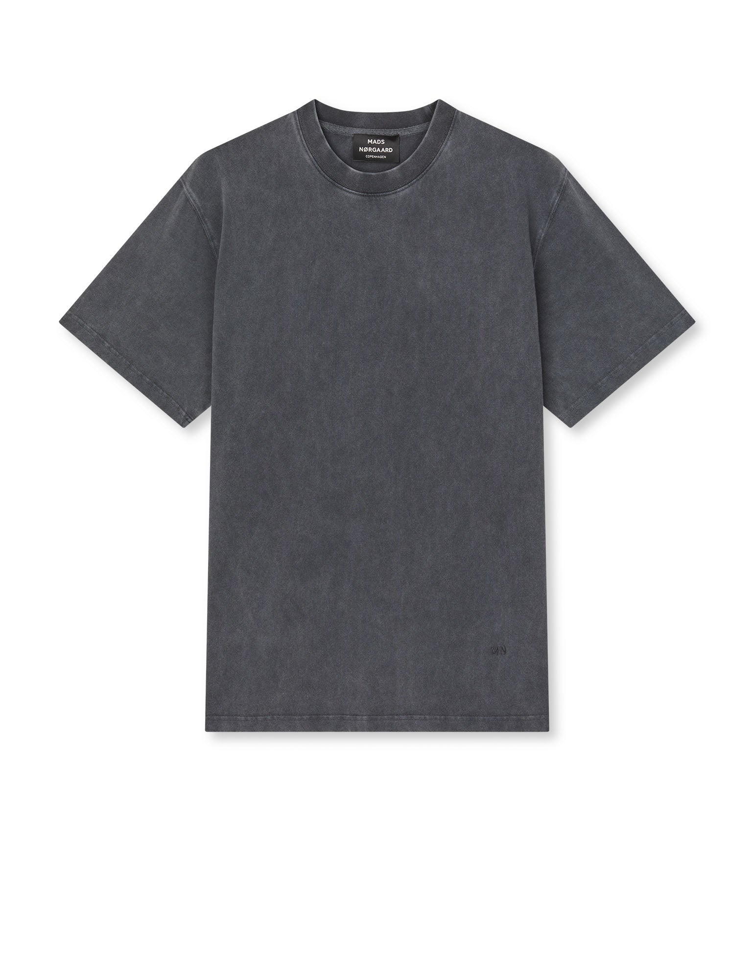 Kastenförmiges T-Shirt mit kurzen Ärmeln und Rundhalsausschnitt. Gerade Passform. Einfarbiges Grundmodell mit leicht gewaschenem Finish und Rippbündchen am Halsausschnitt.