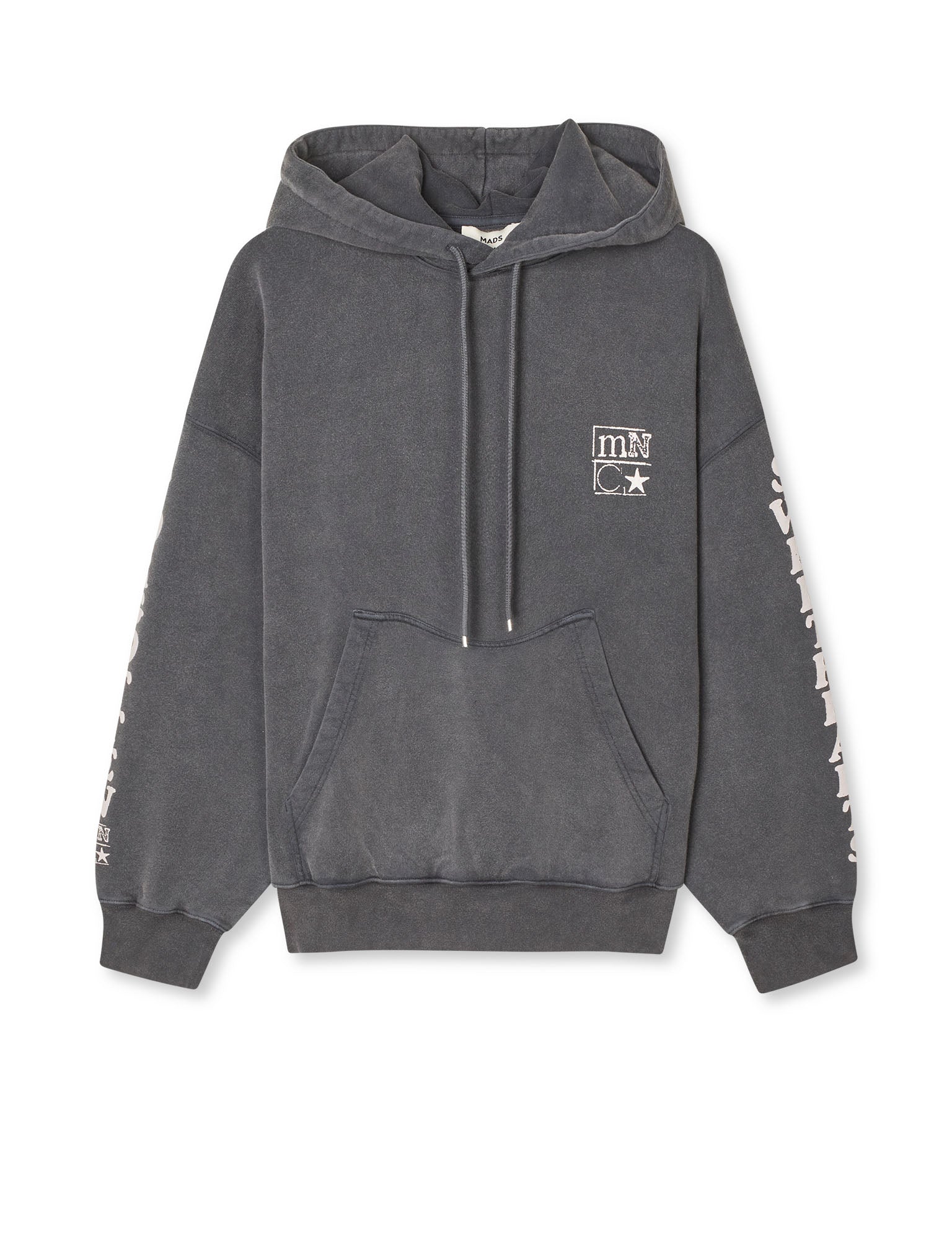 Weicher, oversized geschnittener Kapuzenpullover mit einem Print auf Brust, Ärmeln und Rücken.