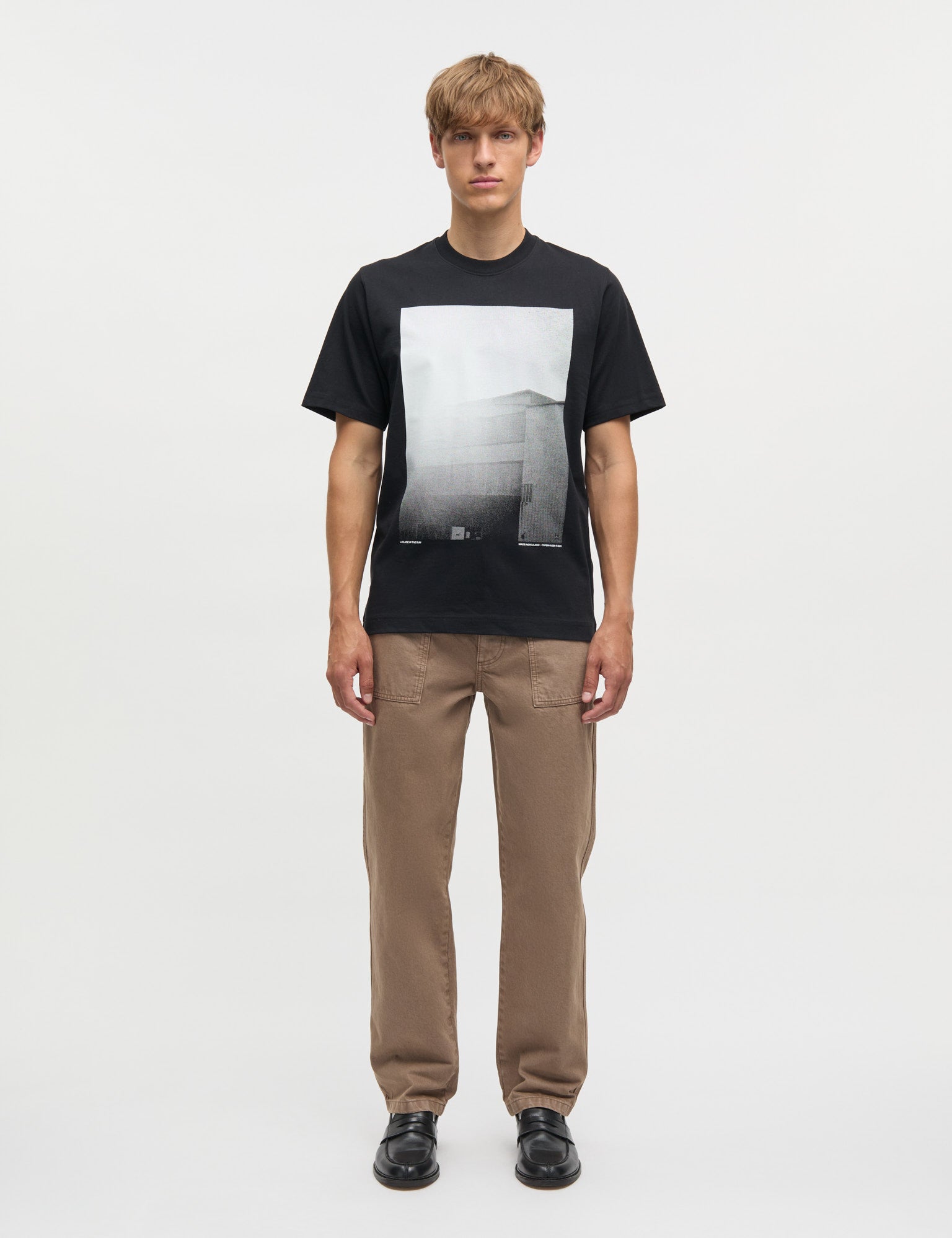 Kurzärmeliges T-Shirt mit Rundhalsausschnitt. Gerade Passform und großem Fotodruck auf der Vorderseite.