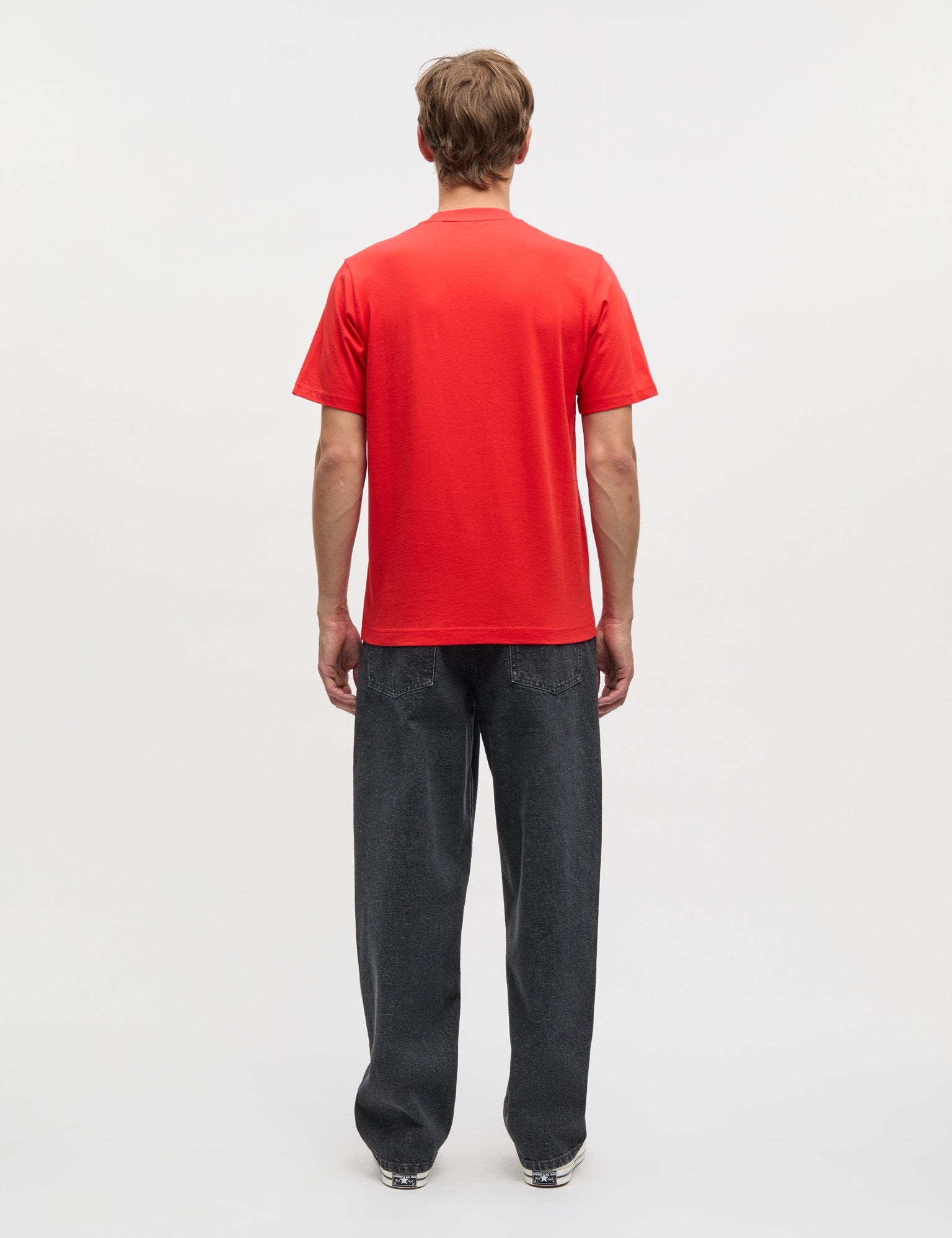 Ein etwas schwereres Kurzarm-T-Shirt mit einem Rundhalsausschnitt und kleiner Logostickerei auf der Brust.