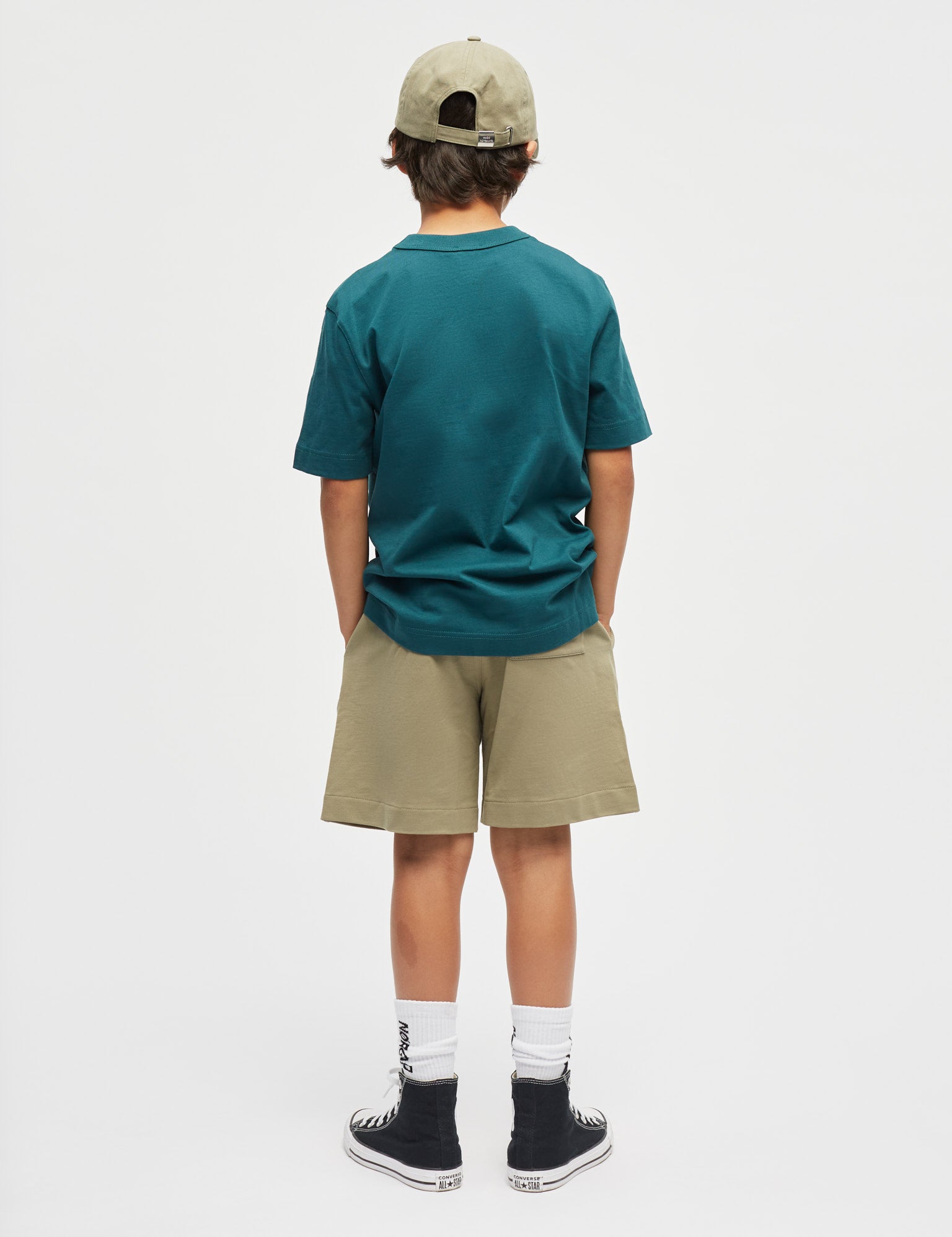 Weiches, kastenförmiges T-Shirt mit Rundhalsausschnitt und gesticktem Logo auf der Brust.