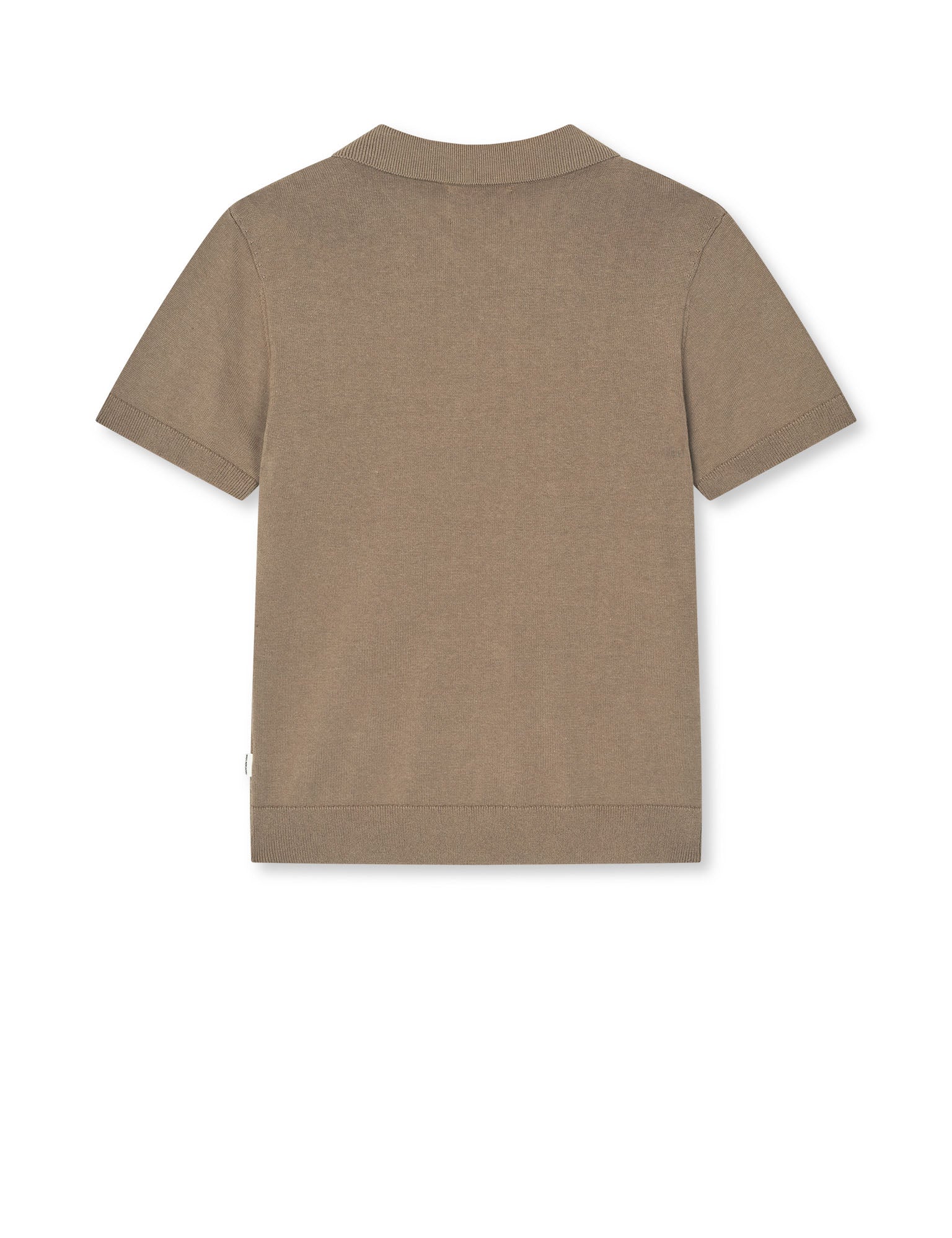 Fein gestricktes Polo-Shirt aus weicher Baumwolle mit kurzen Ärmeln, Kragen und kleinen gestickten Initialen an der Seite.