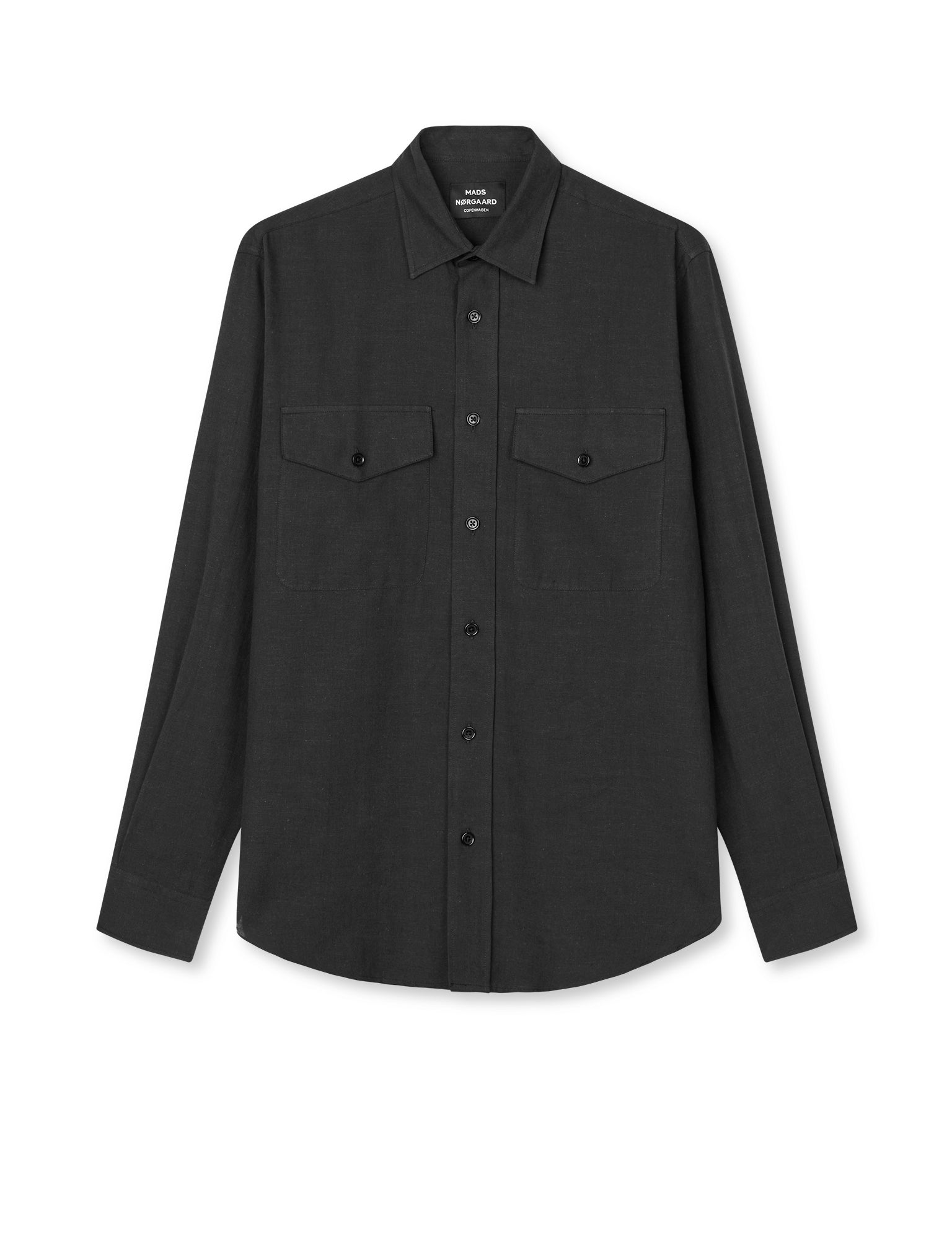 Cotton Linen Sune Officer ist ein weiches und geschmeidiges Hemd aus Leinen und Baumwolle. Die Passform ist normal und durchgehend relativ gerade geschnitten, mit kleinen Knöpfen und einem Kragen im Button-down-Stil.