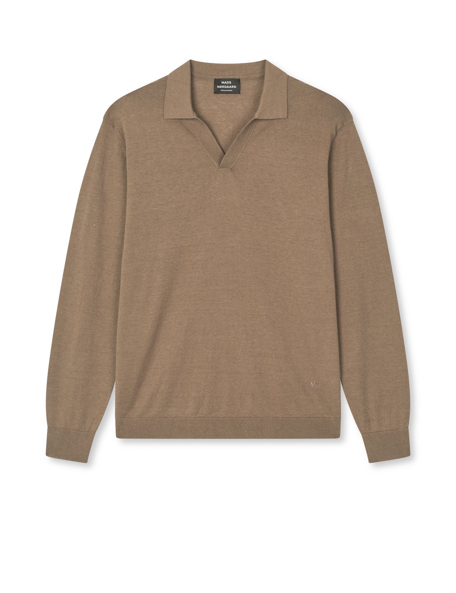 Fein gestrickter Pullover mit offenem Polokragen. Gerade Passform und Rippbündchen an den Ärmeln und am Saum.