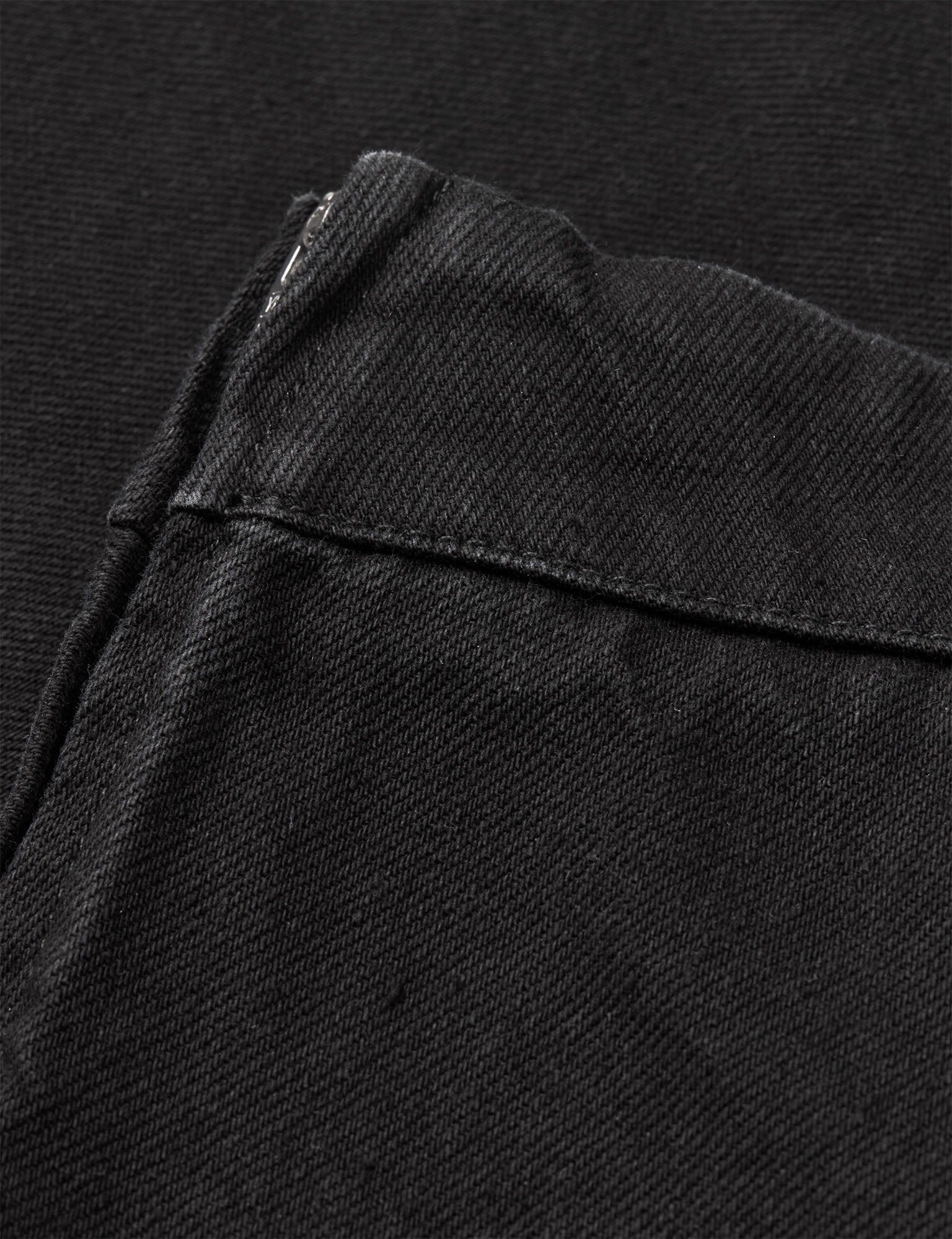 Knielanger A-Linien-Jeansrock mit hoher Taille, Taschen und einem festen Bund mit Reißverschluss hinten.