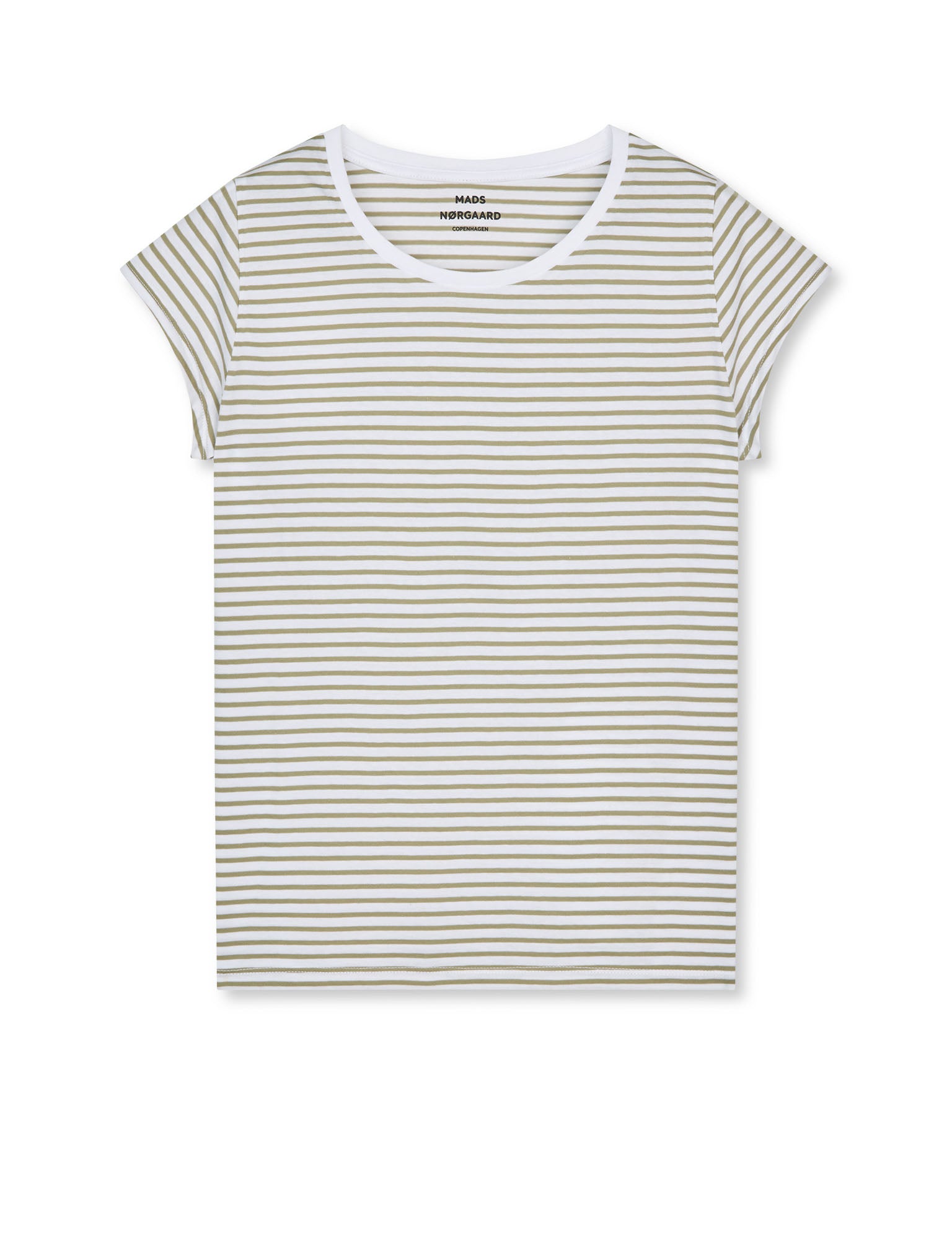 Unser klassisches T-Shirt Fine Jersey Stripe Teasy Tee FAV ist aus weicher und leichter Baumwolle gefertigt. Die Passform ist eng, und die Ärmel sind sehr kurz.
