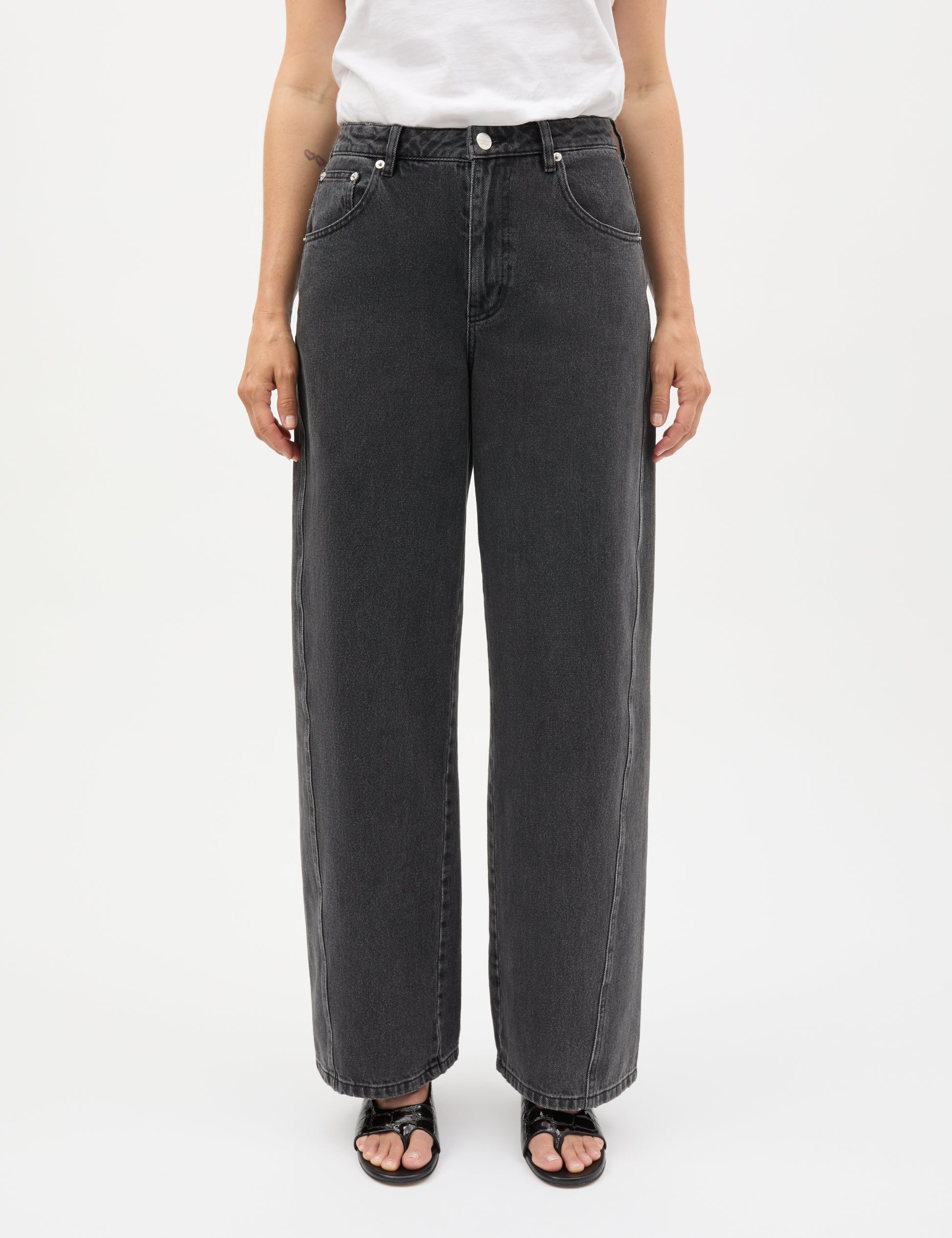 Klassische Christel-Jeans mit lockerer Passform, weitem Bein, Gürtelschlaufen an der Taille sowie Vorder- und Gesäßtaschen.