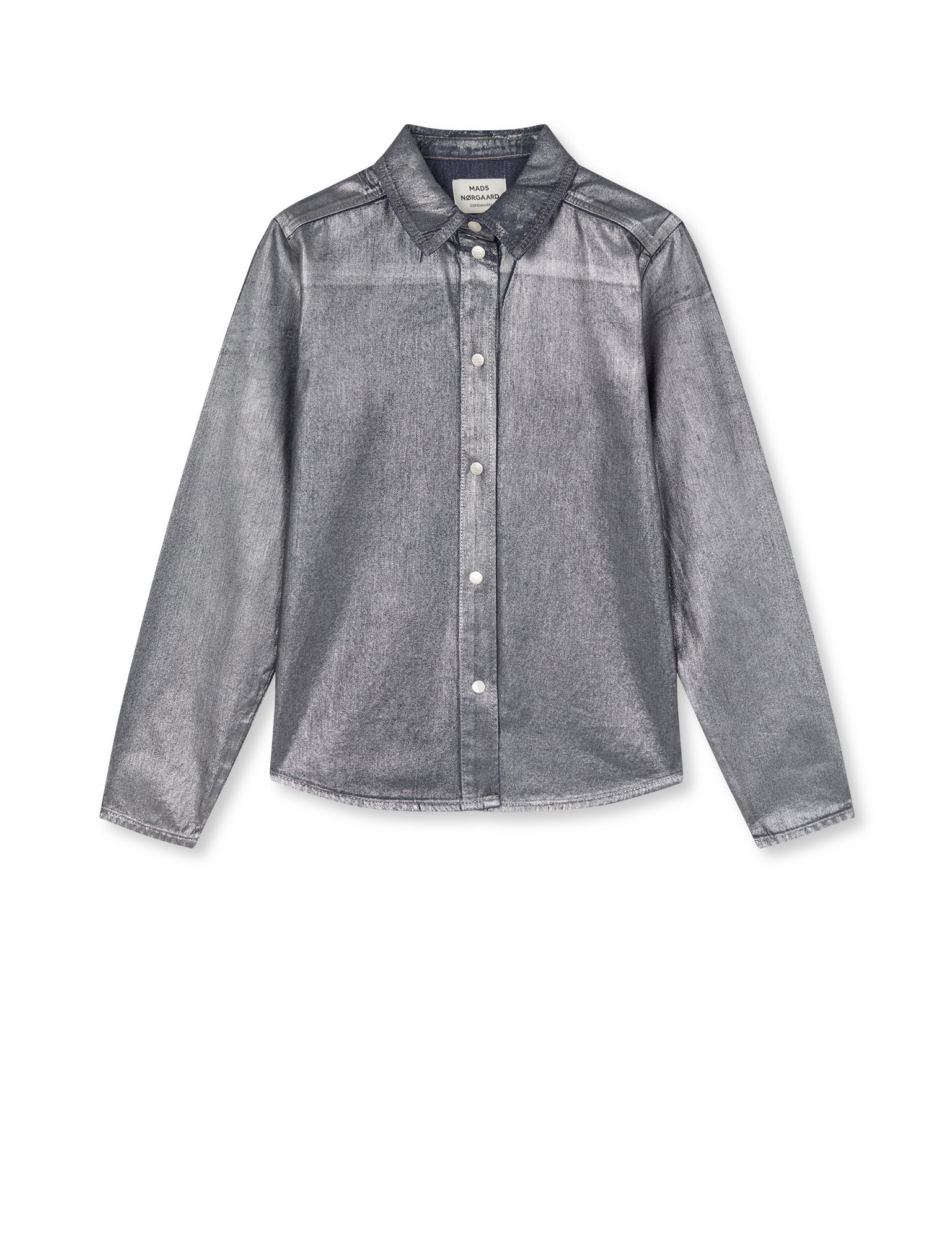 Leichtes und oversized geschnittenes Jeanshemd mit einem schmalen Stehkragen, Manschetten und Druckknöpfen.