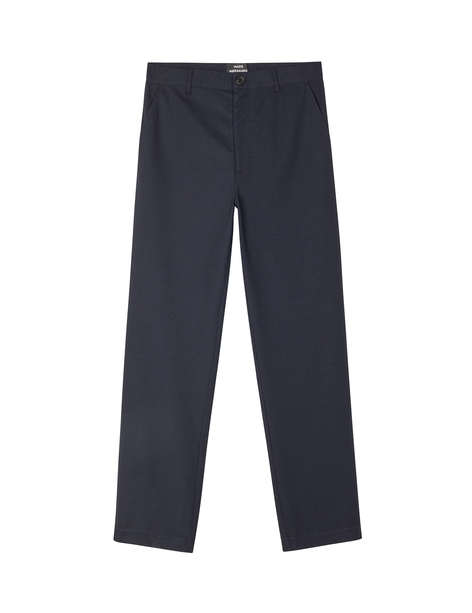 Die Metropolis Morten Hose ist elastisch und superbequem. Die Passform ist durchgehend gerade und der Stoff fühlt sich an wie weicher Jersey aus kuscheliger Wolle.