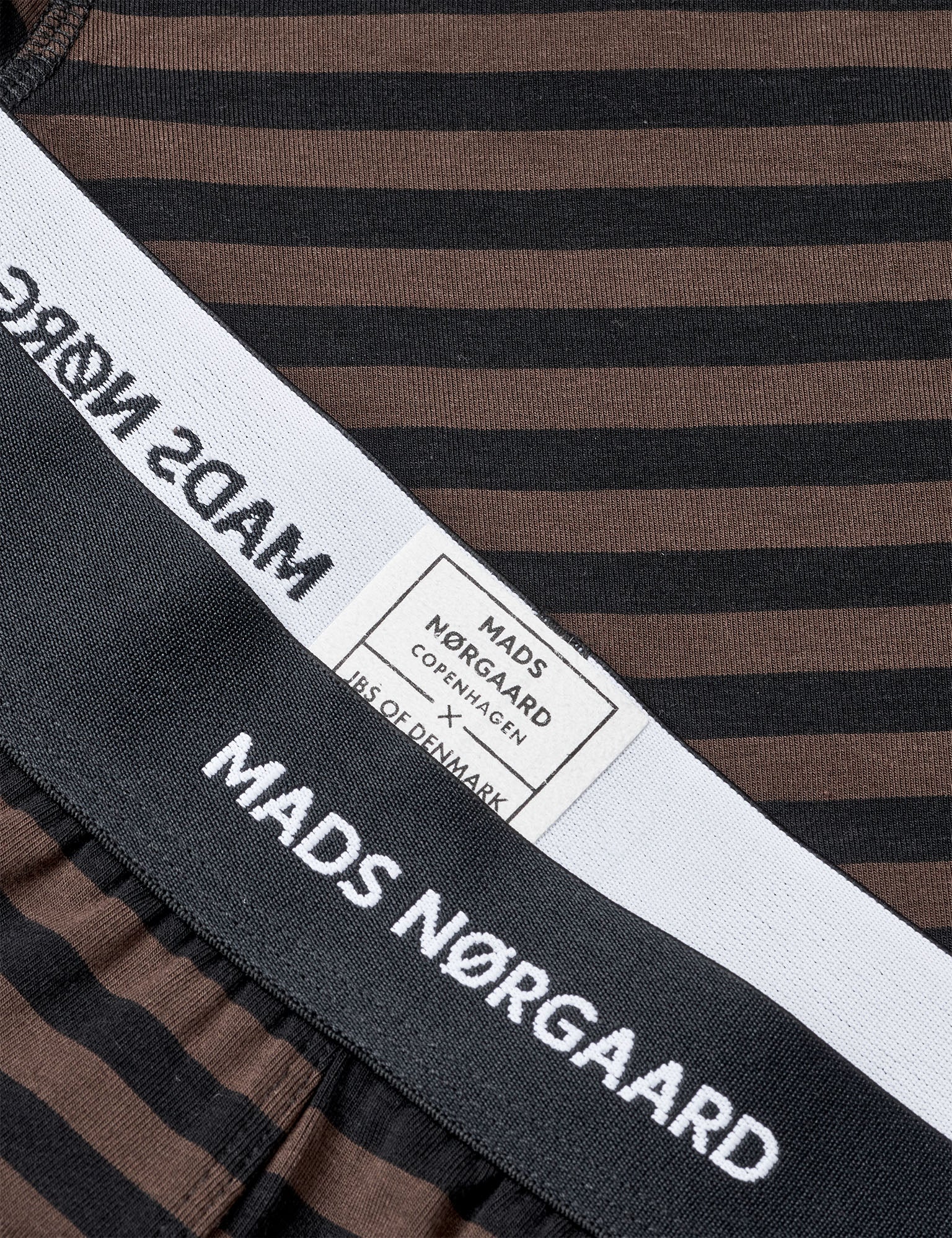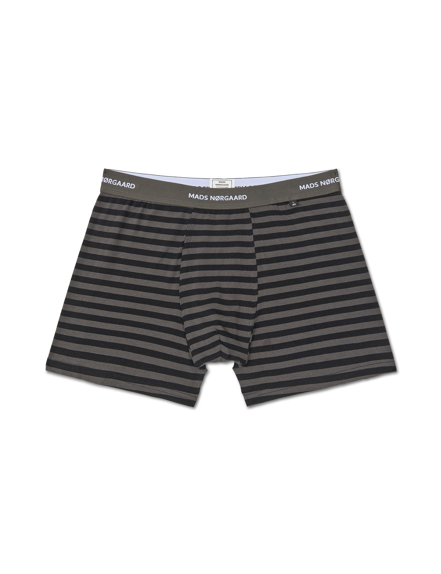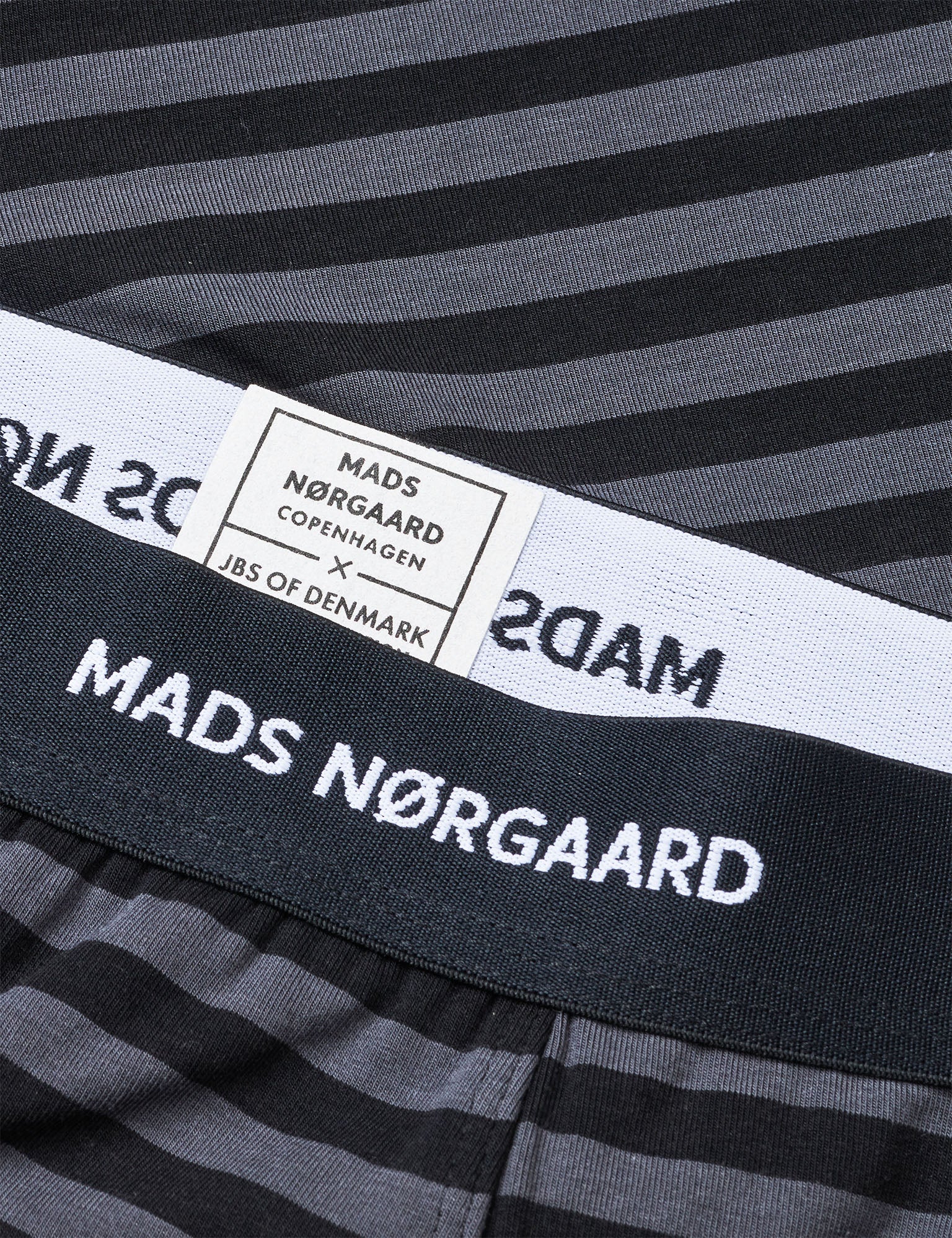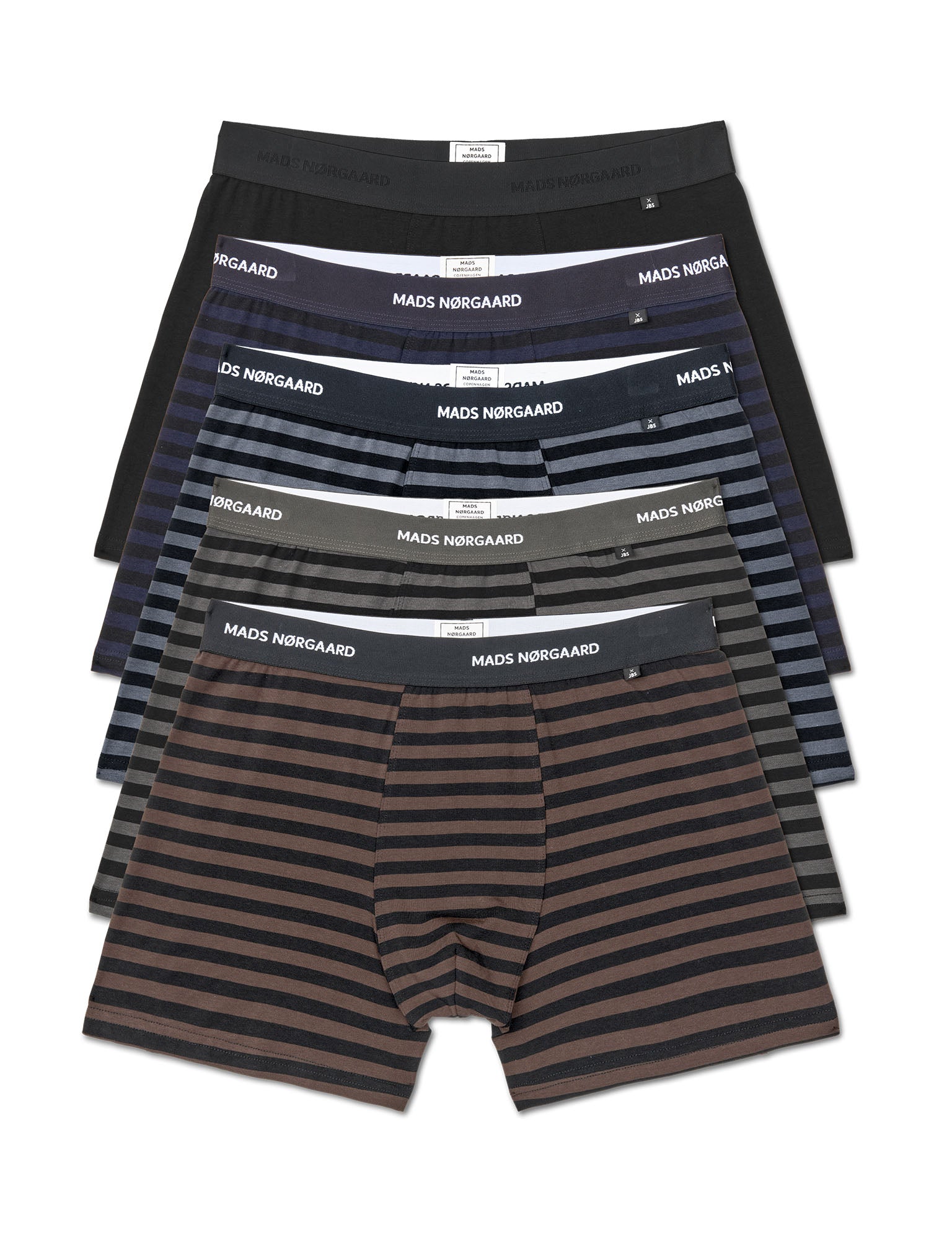 Geschenkbox mit 5 Paar Boxershorts für Herren. Das Design dieser Tights ist ein schönes klassisches Design, das den bekannten Streifen von JBS und Mads Nørgaard treu bleibt. Diese aus Bambusviskose hergestellten Boxershorts sind weich und bieten außergewöhnlichen Tragekomfort. Mit diesem 5er-Pack erhalten Sie fünf Paar gestreifte Boxershorts in fünf verschiedenen Farben. Sie werden in einer schönen Box geliefert, die sich hervorragend als Geschenk eignet.