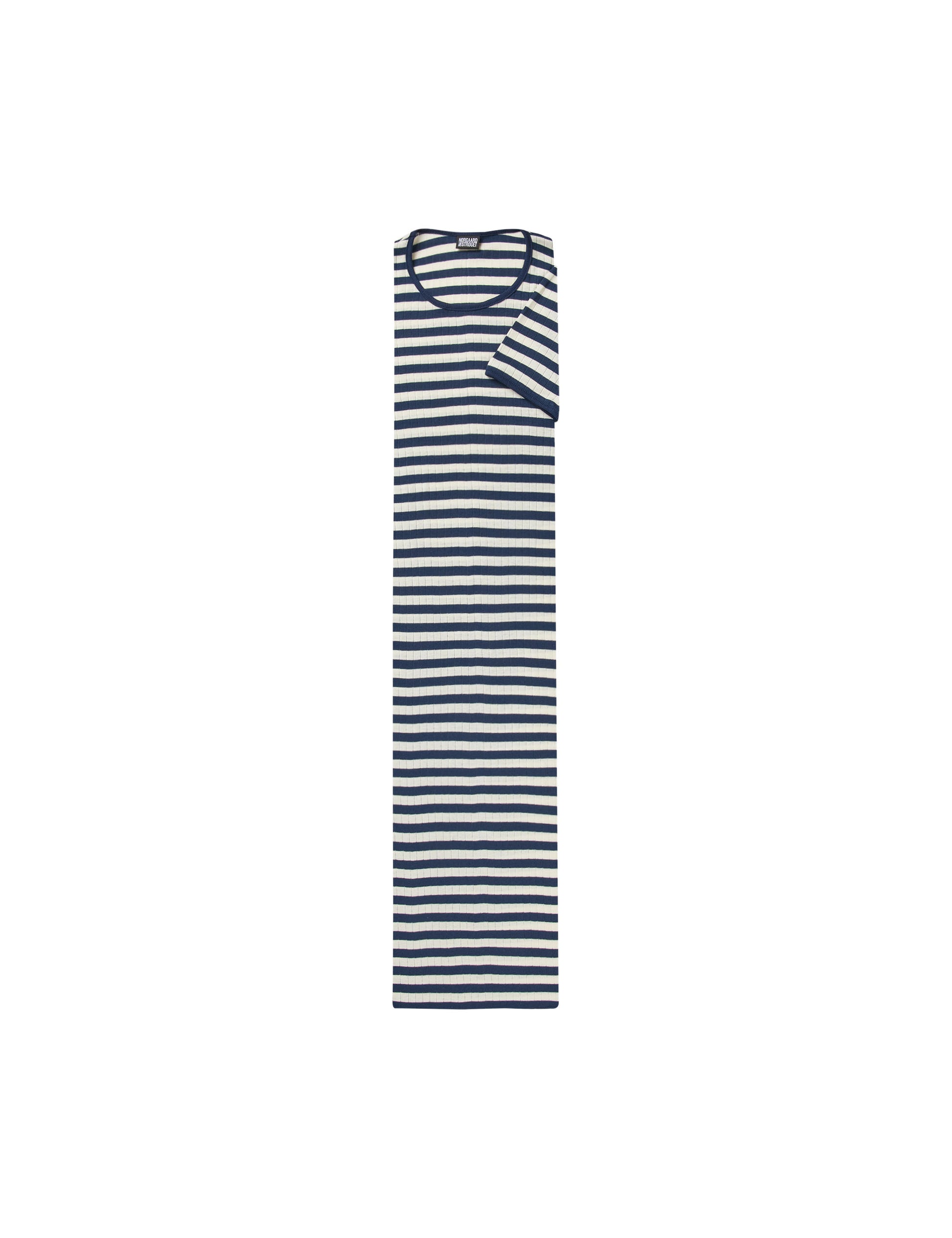 NPS John Dress Short Sleeve Broadway ist ein knielanges Kleid, das auf dem Design des klassischen NPS #101 T-Shirts basiert. NPS John Dress ist ein Remake des klassischen NPS #101 T-Shirts, das 1967 von Jørgen Nørgaard entworfen wurde. Das Kleid wurde erstmals in den 1970er Jahren entworfen und wird immer noch in Dänemark aus 100 % Baumwolle gestrickt und genäht. John Dress ist in einer Einheitsgröße erhältlich und hat kurze Ärmel.