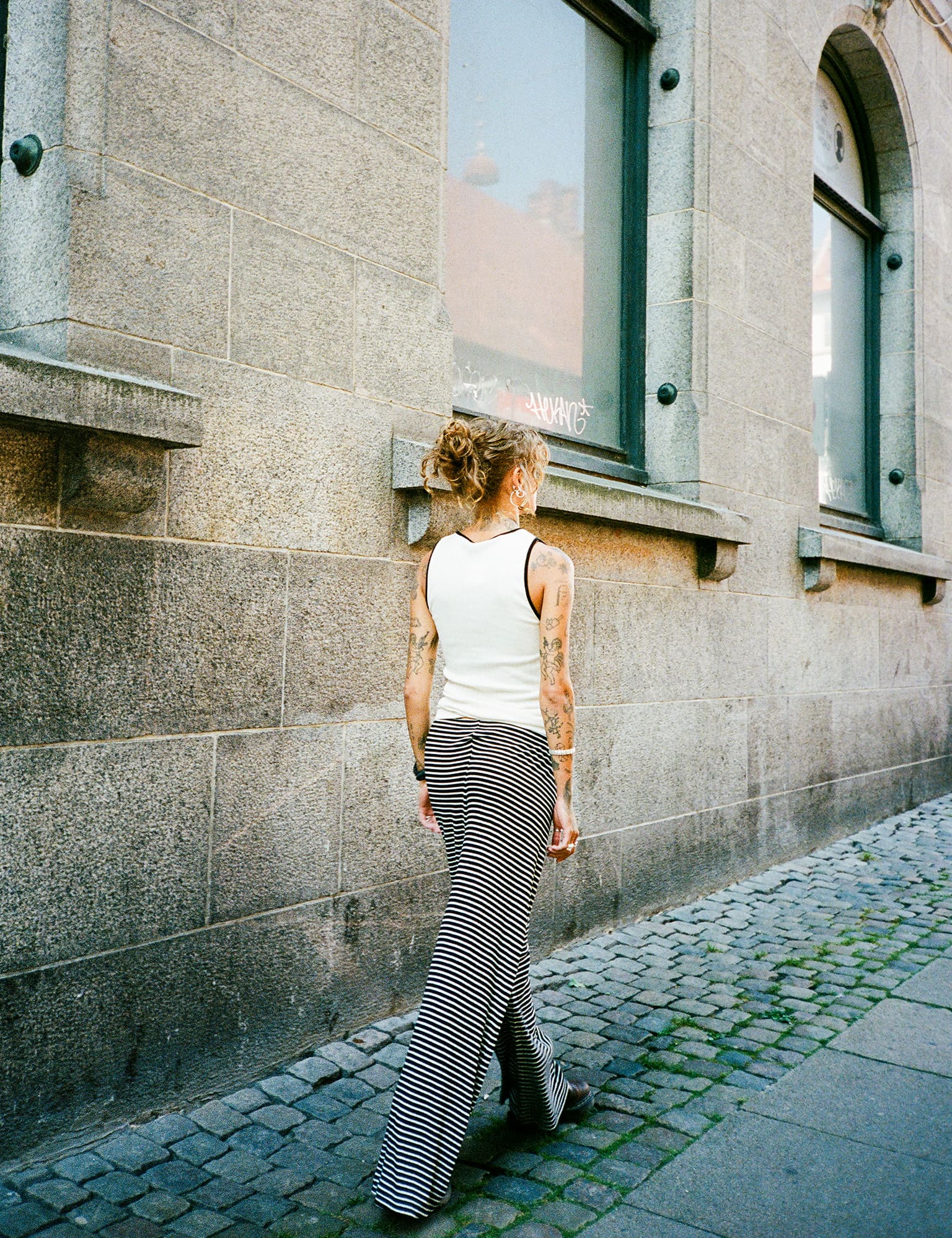 NPS Nova Pants NPS Stripes ist eine Hose ohne Seitennähte in lockerer Passform mit Kordelzugverschluss. Die Hose wird in unserer Näherei in Korsør genäht und der Stoff wird in Ikast aus 100 % BCI-Baumwolle gestrickt. NPS Nova Pants NPS Stripes sind inj Einheitsgröße in zwei verschiedenen Längen erhältlich. Die Größe 2 ist ca. 10 cm länger als Größe 1.