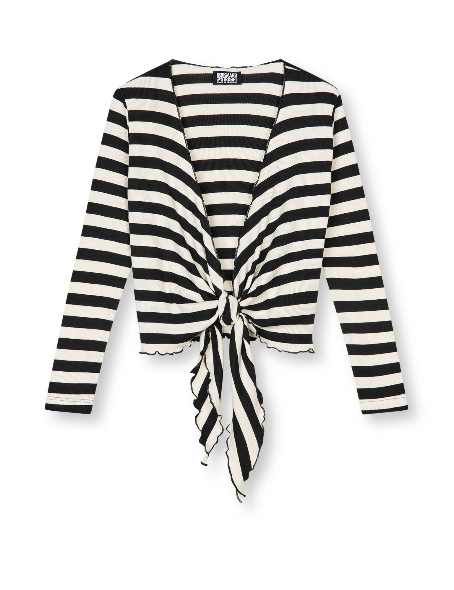 NPS Wrap Top Stripe ist ein Wickeltop in gerippter Baumwollqualität, das unter der Brust oder auf dem Rücken gebunden werden kann. Die Bluse wurde in den 90er Jahren entworfen und wird in Dänemark gestrickt und genäht.