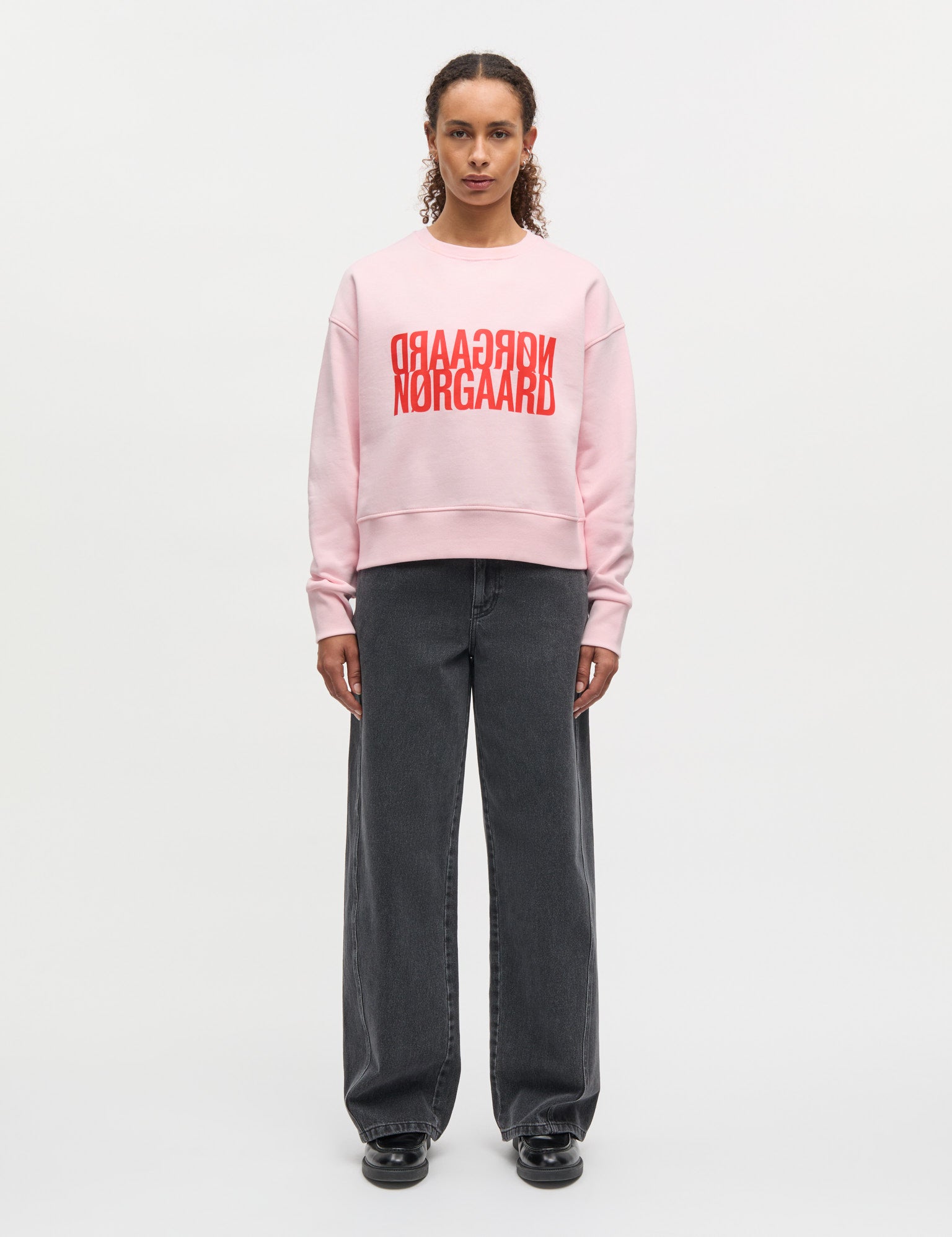 Sweatshirt mit Rundhalsausschnitt, überschnittenen Schultern und großem grafischem Logo vorne in der Mitte.