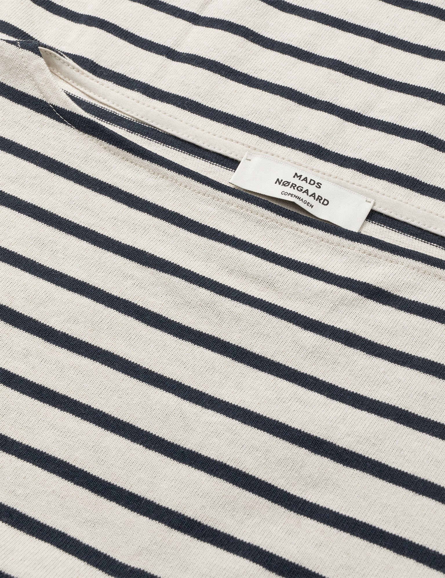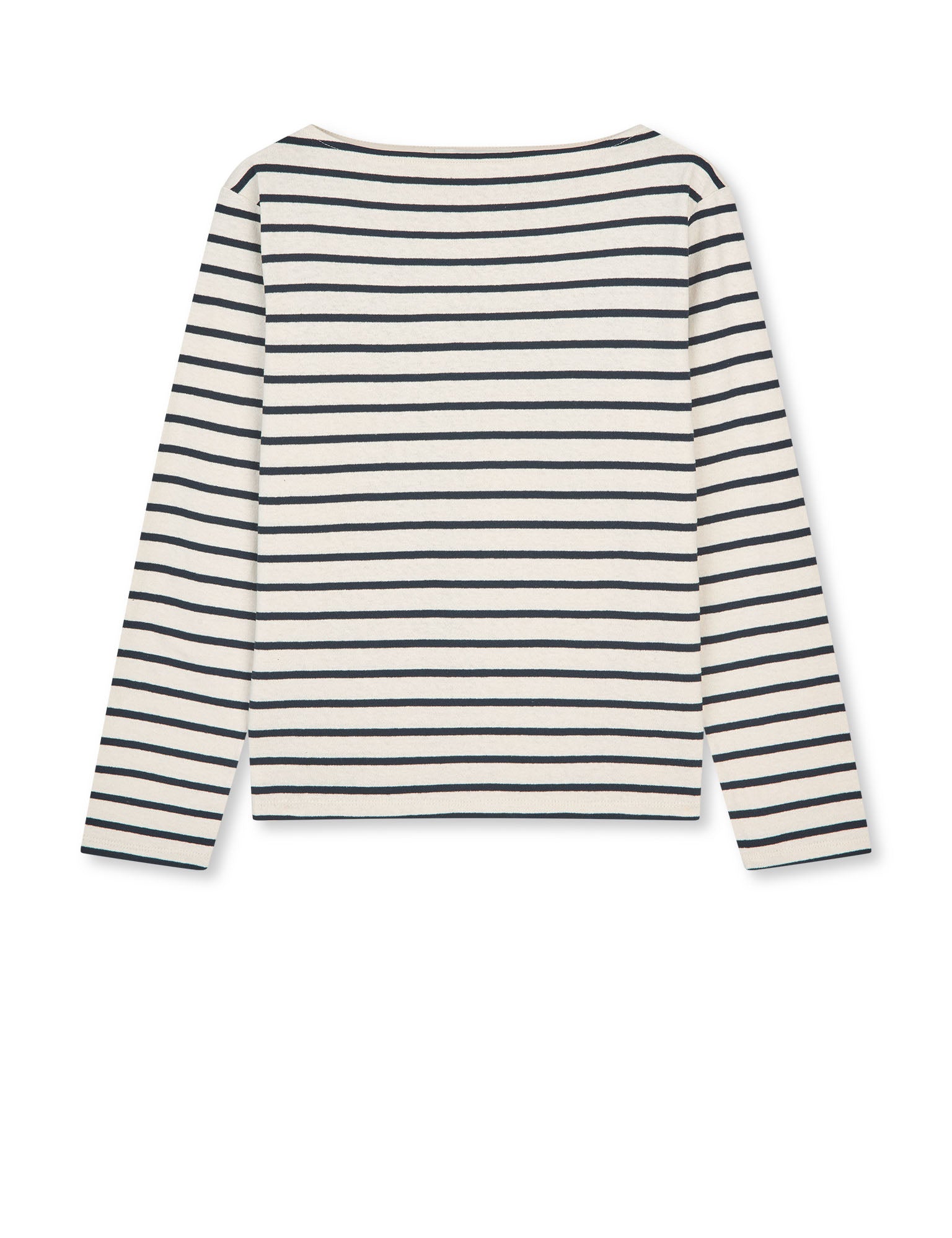 Langärmelige Bluse mit gerader Passform, U-Boot-Ausschnitt und horizontalen Streifen.