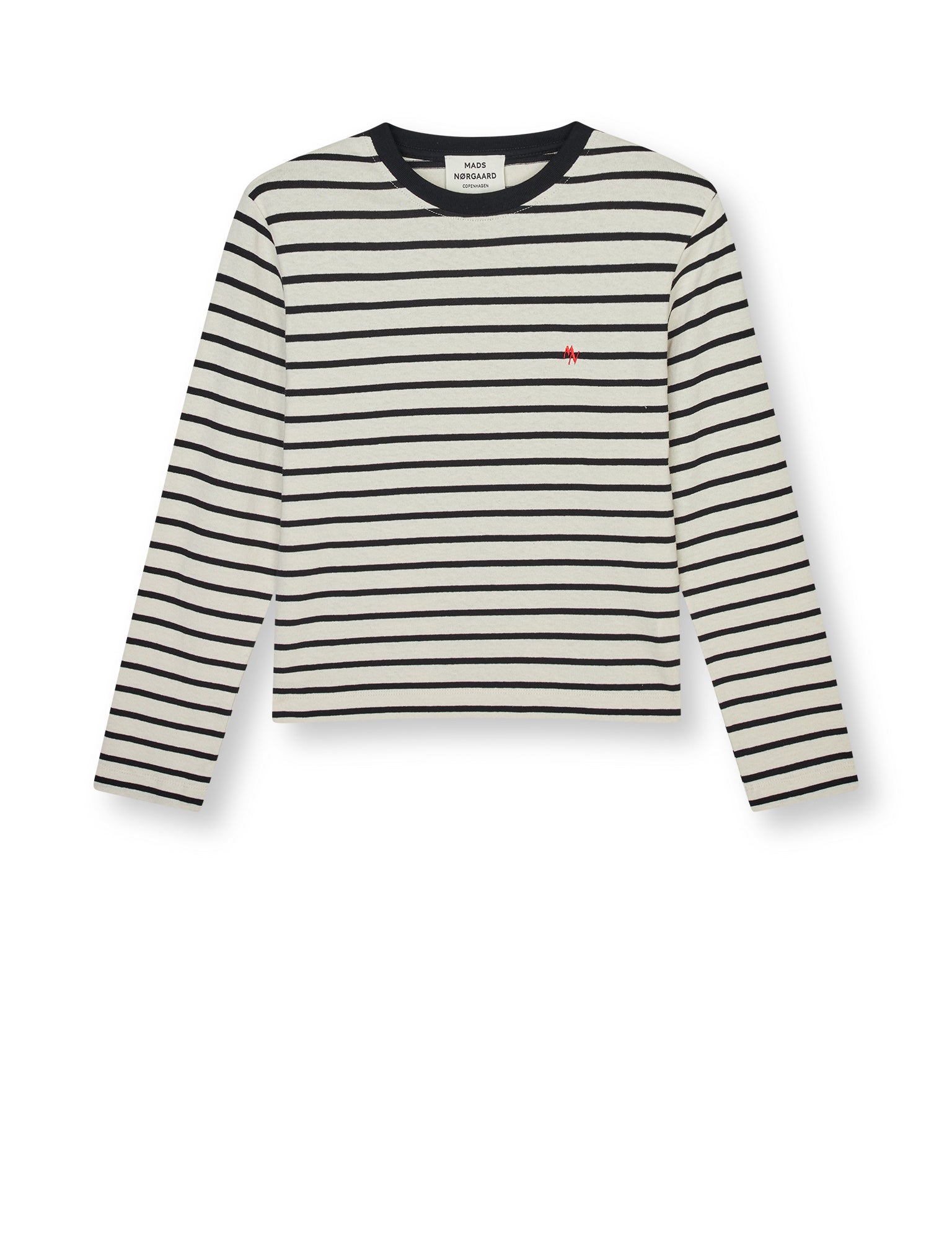 Langarmshirt mit einem Rundhalsausschnitt und einem kleinen aufgestickten Initialen-Logo auf der Brust.