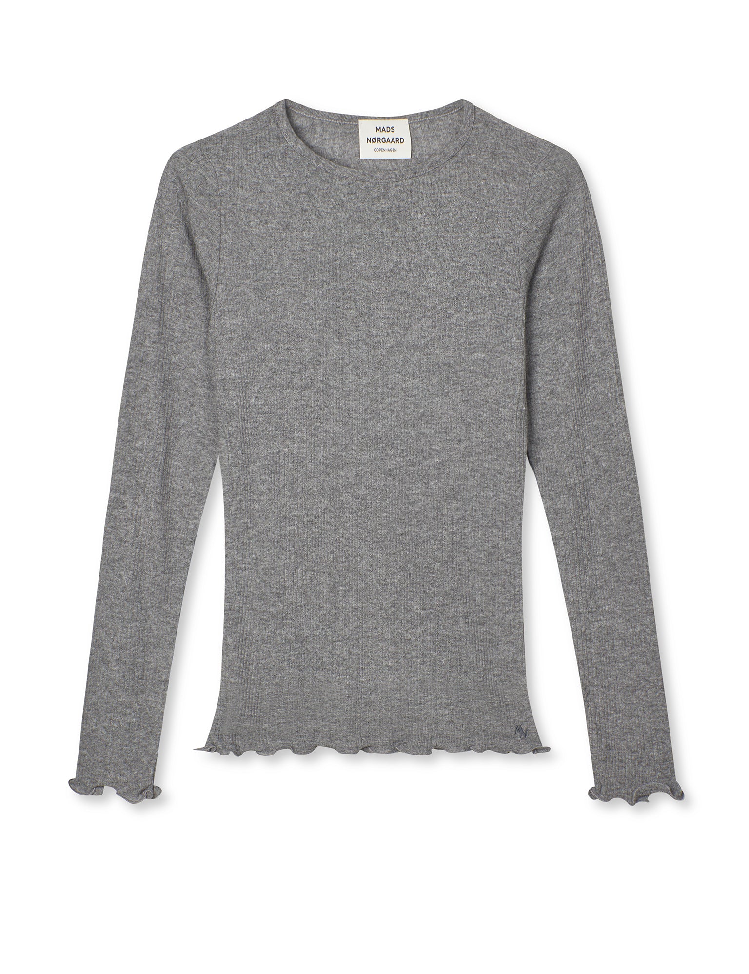 Eng anliegendes und dehnbares Langarmshirt mit einem Rundhalsausschnitt und Wellenkanten.