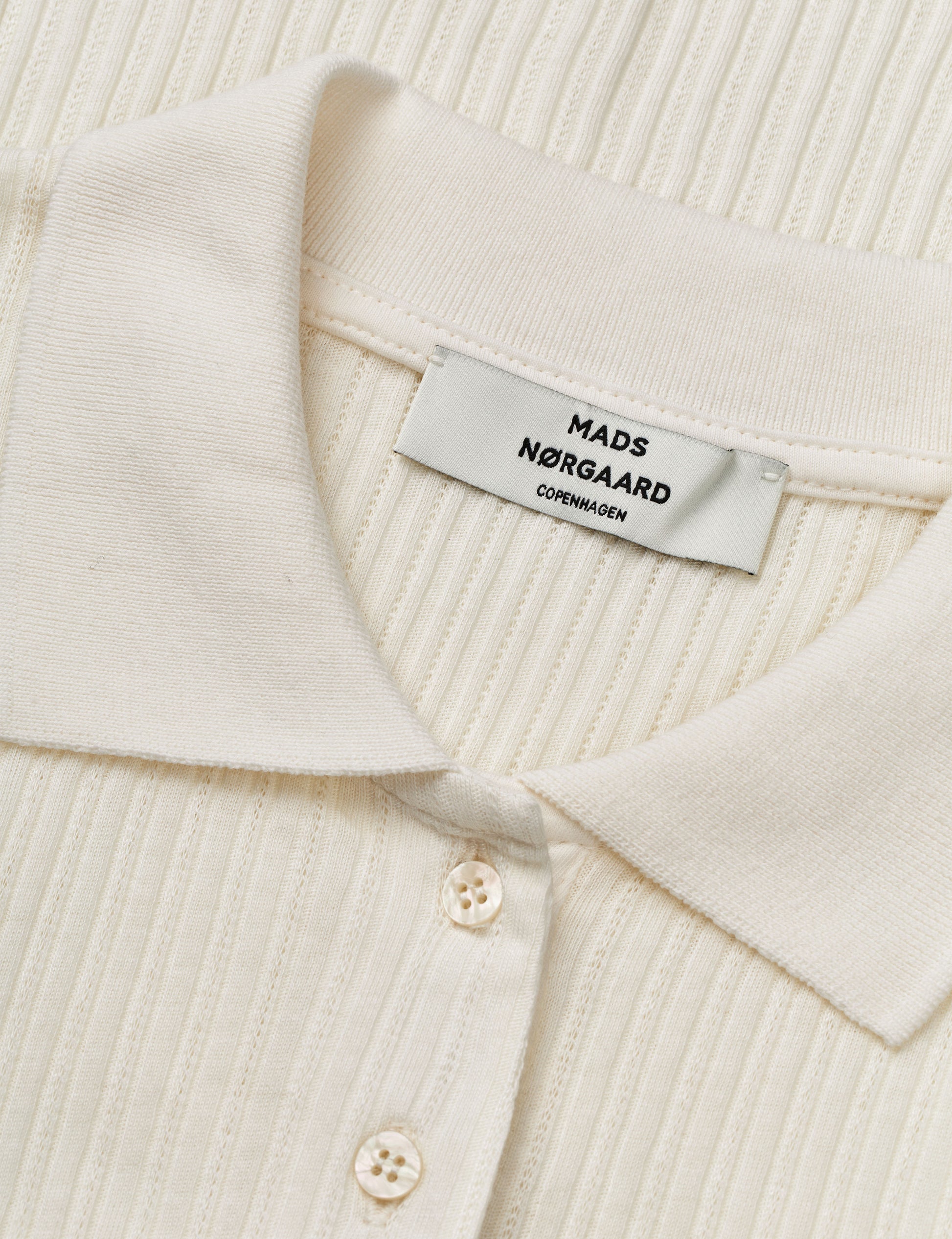 Kurzärmeliges Polo mit Kragen und Knopfleiste. Schmale Passform. Rippstrickqualität mit vertikaler Struktur. Unifarbenes Design mit schlichten Abschlüssen.