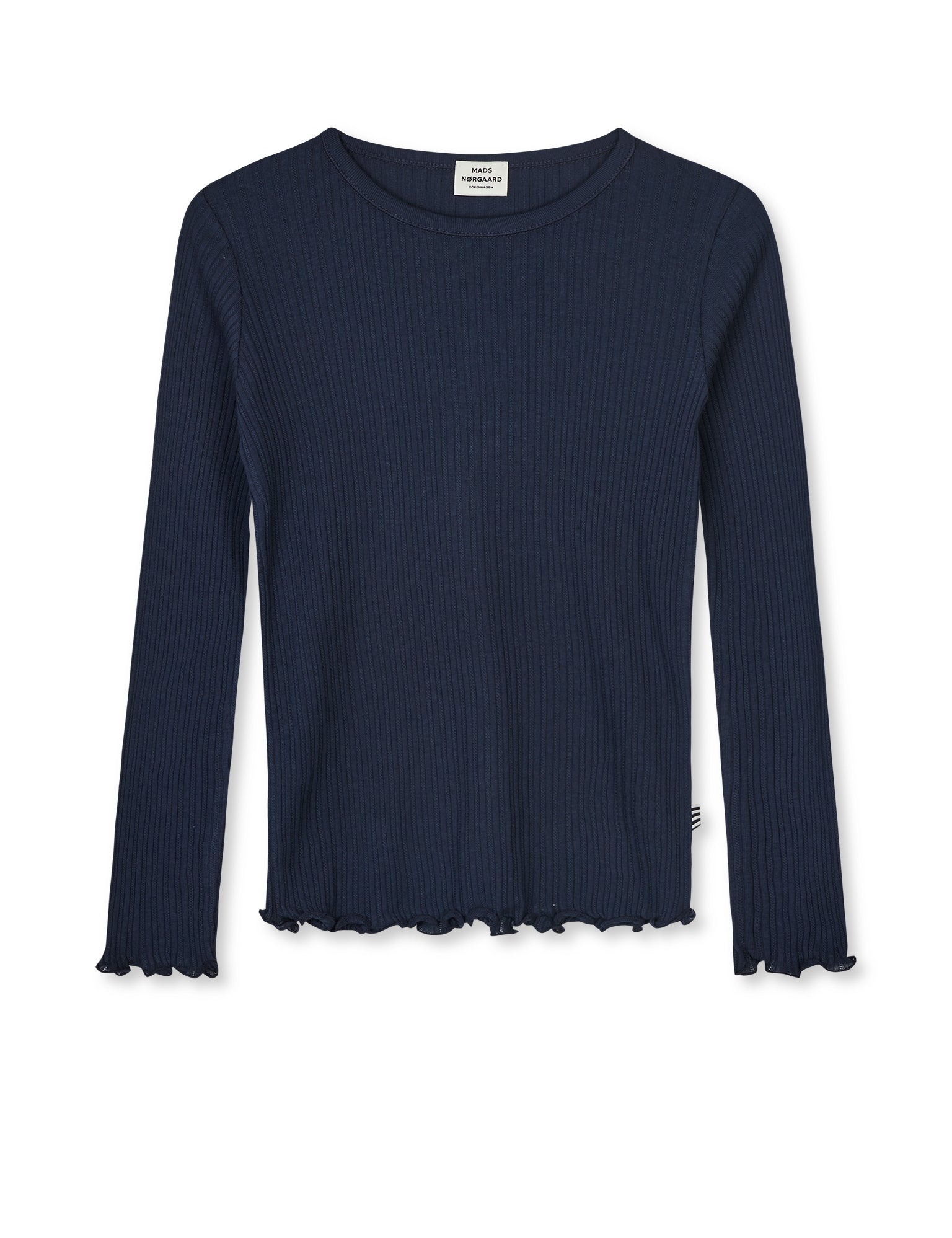 Das Langarmshirt Pointella Trudy ist eng anliegend, aus dehnbarem Rippstrick-Jersey und mit gekräuselten Kanten, Rundhalsausschnitt und Nadelstreifenmuster versehen.