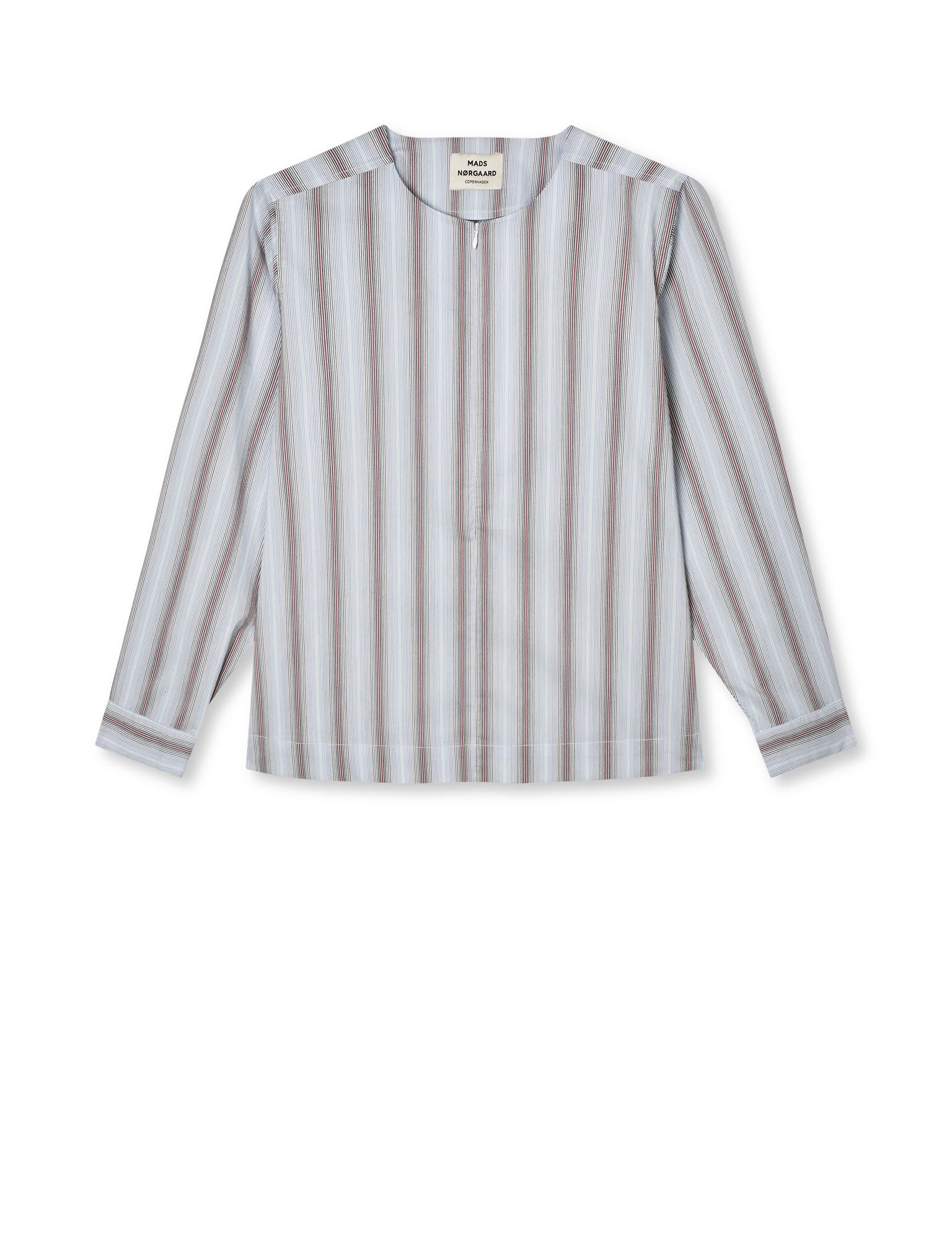 Lockeres Hemd ohne Kragen und mit einem durchgehenden Reißverschluss.