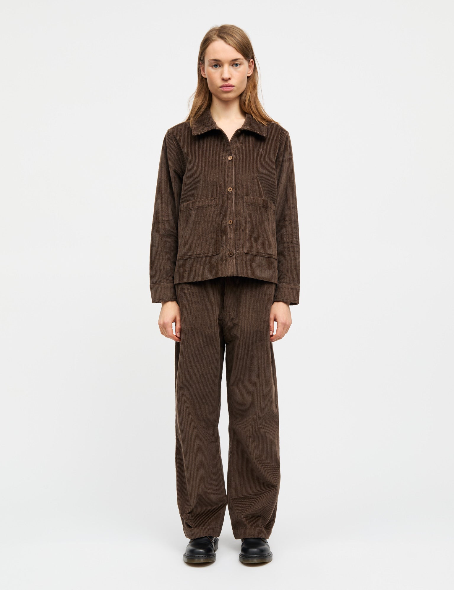 Weiche und lockere Cordhose mit weitem Bein, versteckten Taschen und einem festen Bund mit Gürtelschlaufen.