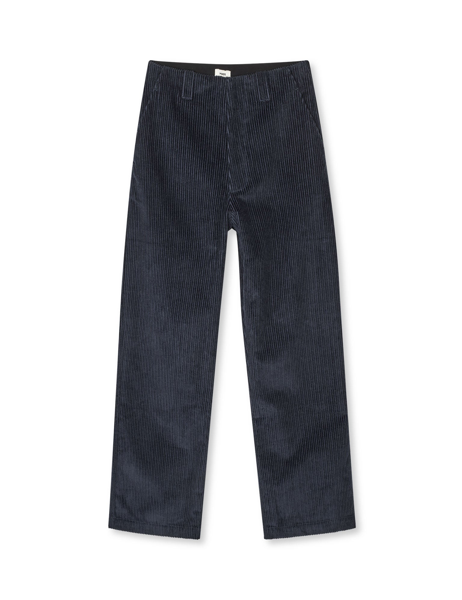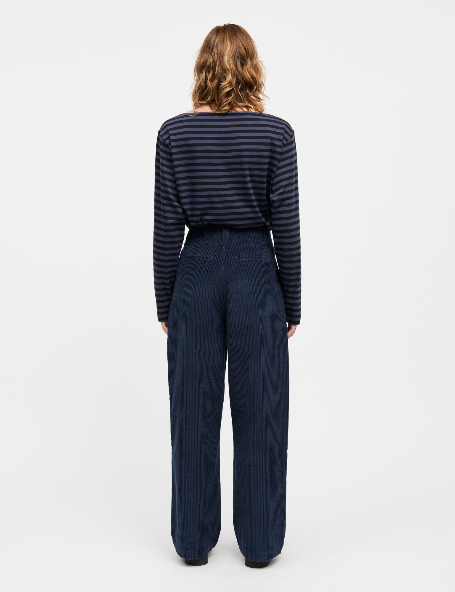 Weiche und lockere Cordhose mit weitem Bein, versteckten Taschen und einem festen Bund mit Gürtelschlaufen.