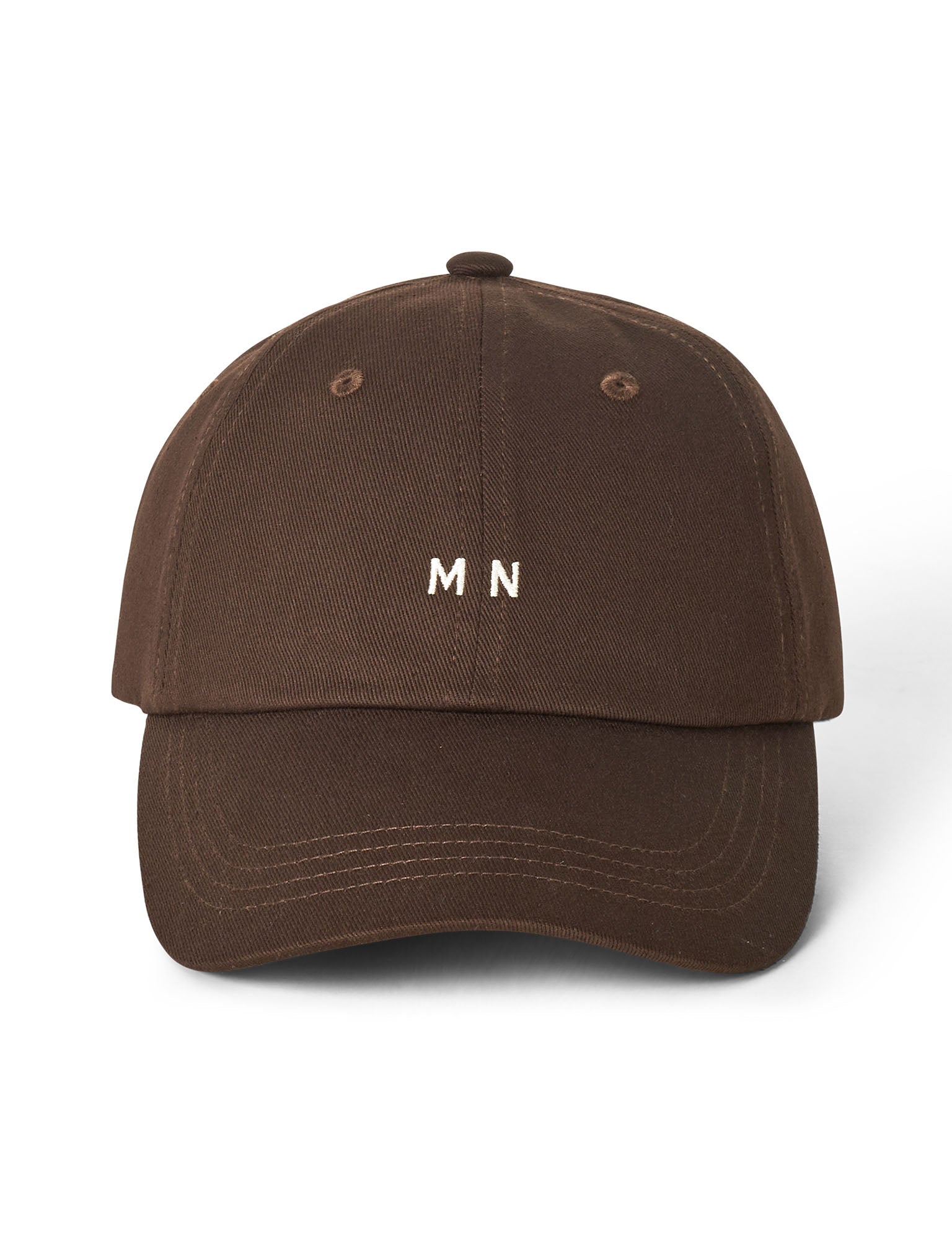 Baseballcap mit verstellbarer Schnalle hinten, einem Knopf oben und einem Initialen-Logo vorne.