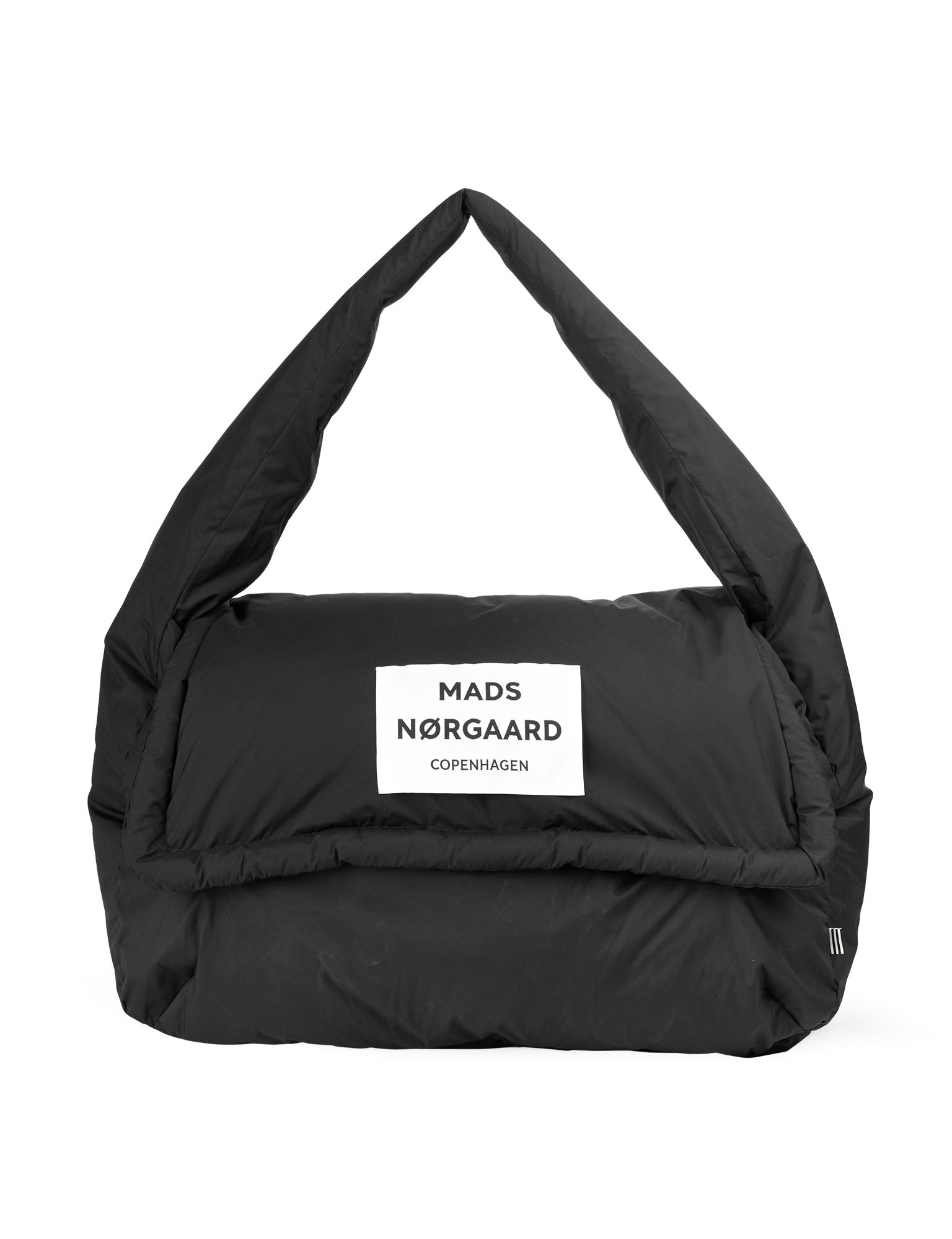 Tasche mit bauschigem Look. Schulterriemen und Logoetikett auf der Vorderseite. Ein großes Innenfach und ein kleines Seitenfach. Gesamthöhe: 40 cm. Seitenbreite, unten: 20 cm