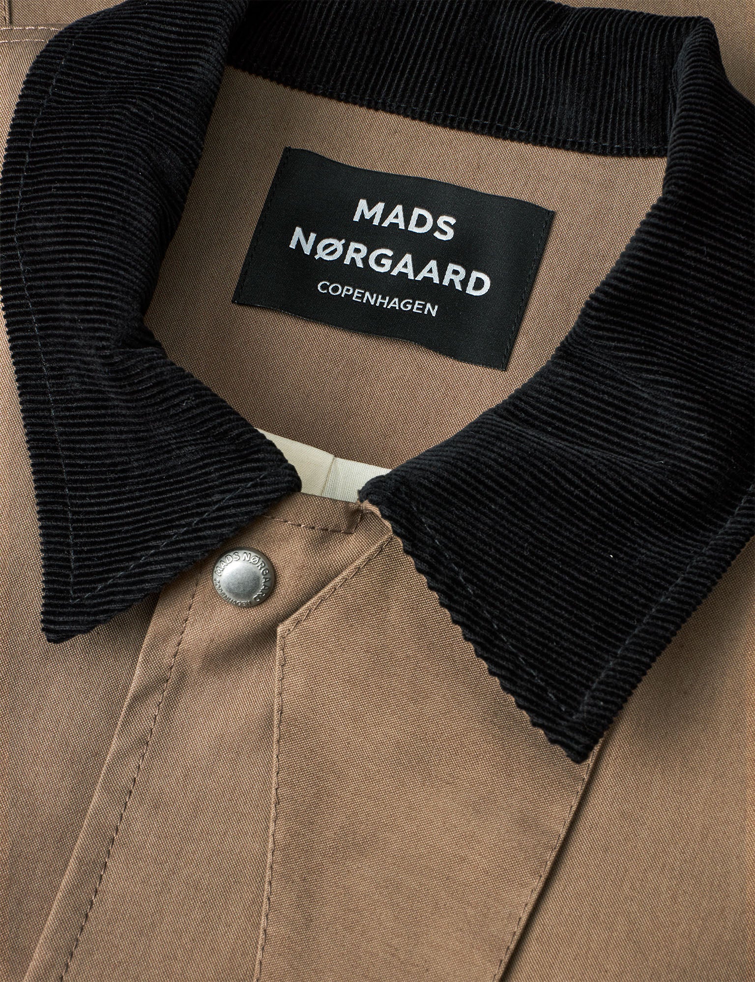 Workwear-Jacke aus robustem Baumwoll-Canvas. Die Passform ist regulär mit Kragen aus Kontrastcord, schrägen Brusttaschen mit Reißverschluss, großen Pattentaschen vorn und Druckknöpfen. Die Ärmel sind schlicht ohne Bündchen.